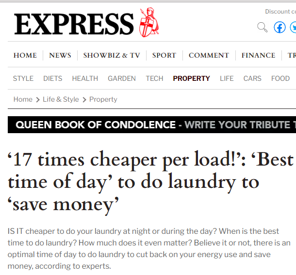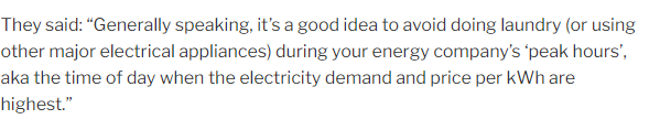 You don’t. To make use of offpeak prices, you need a dual rate tariff: however, E7 tariffs come at a cost. The peak rate is usually higher than a standard tariff single rate.Noodler said:If I pay a specific unit rate for electricity regardless of the time of day, and my washing machine use a certain amount of electricity per cycle regardless of the time of day, how do I save money by operating my washing machine during off-peak hours?