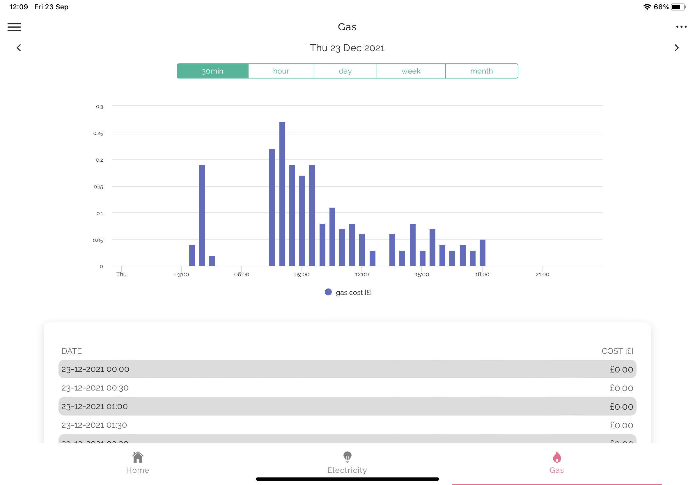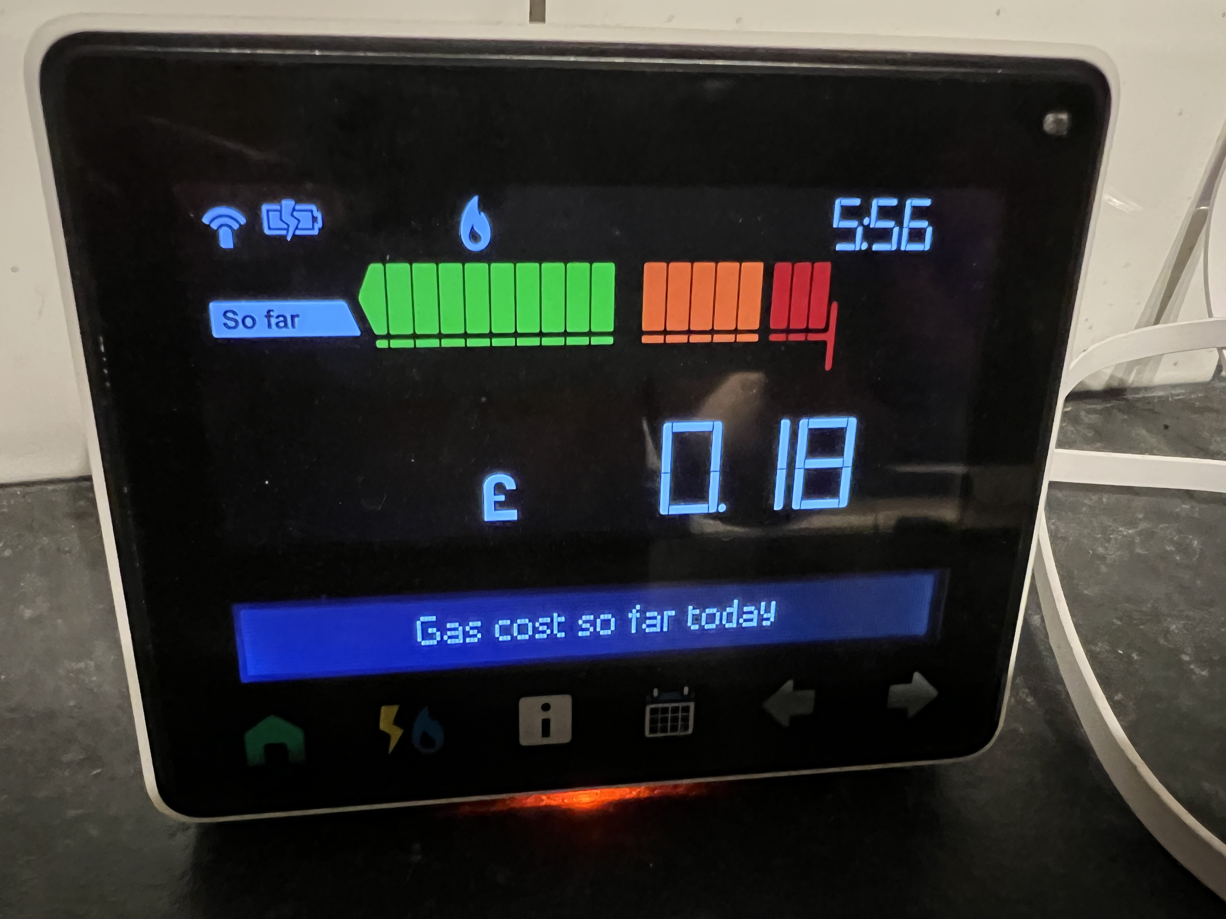 We have smart meters for Gas & Electric and have one of these monitor thingies (don’t know the proper name sorry). There’s various screens on it and there’s one which shows your costs so far for today.