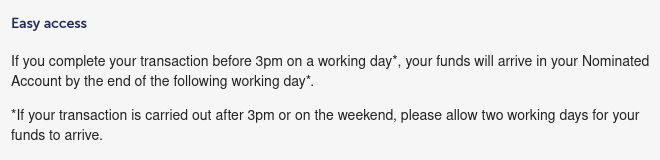 Is it identical to Shawbrook - in that if requested by 2pm today, it'll be in nominated account the next working day?