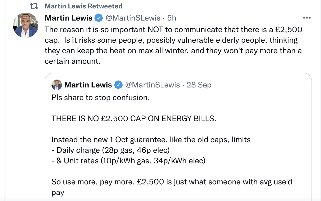 So you see, this is why I need to know if there is actually anything written anywhere by the government or Ofgem that states that the £2,500 figure is not actually a guarantee even in the event that you did have typical usage. Of course, that would mean that we're all being lied to0 -