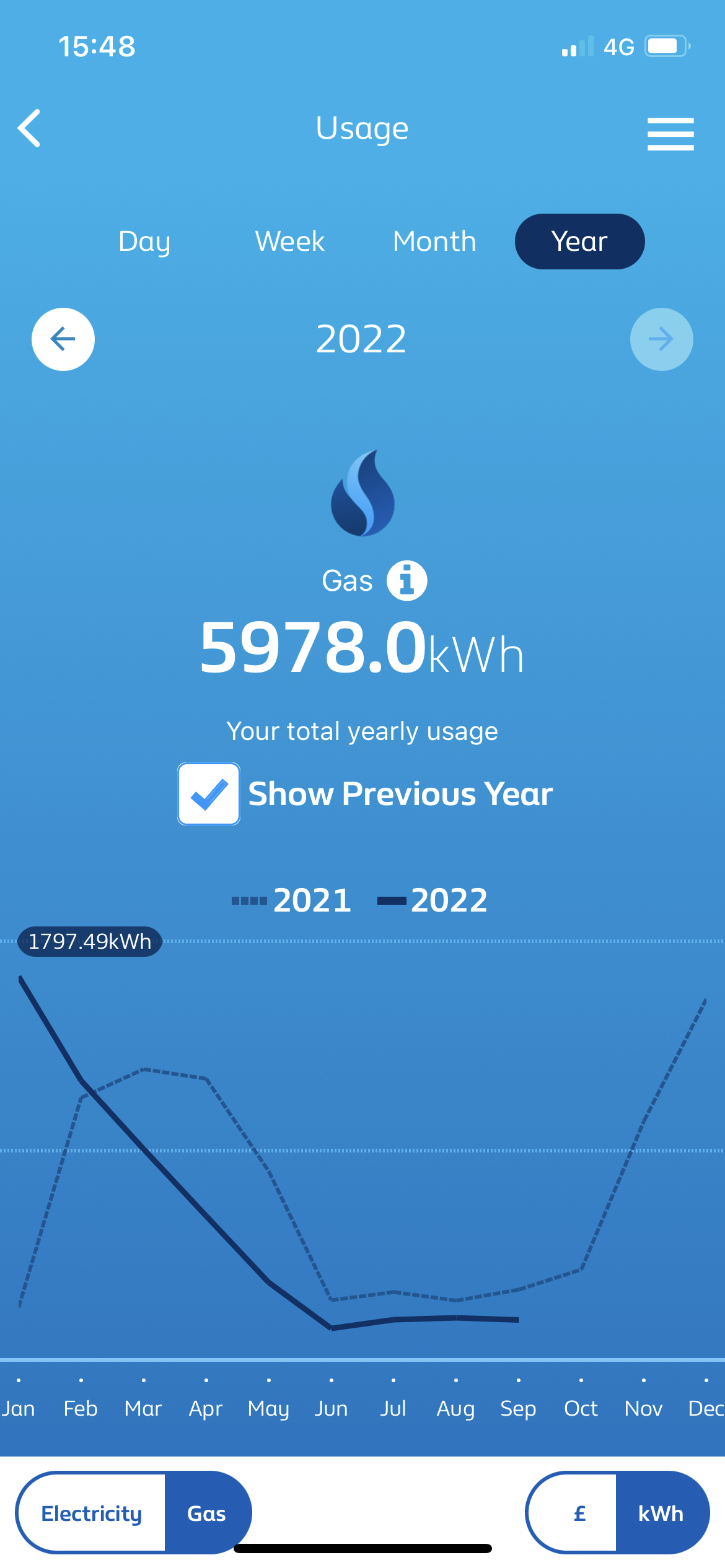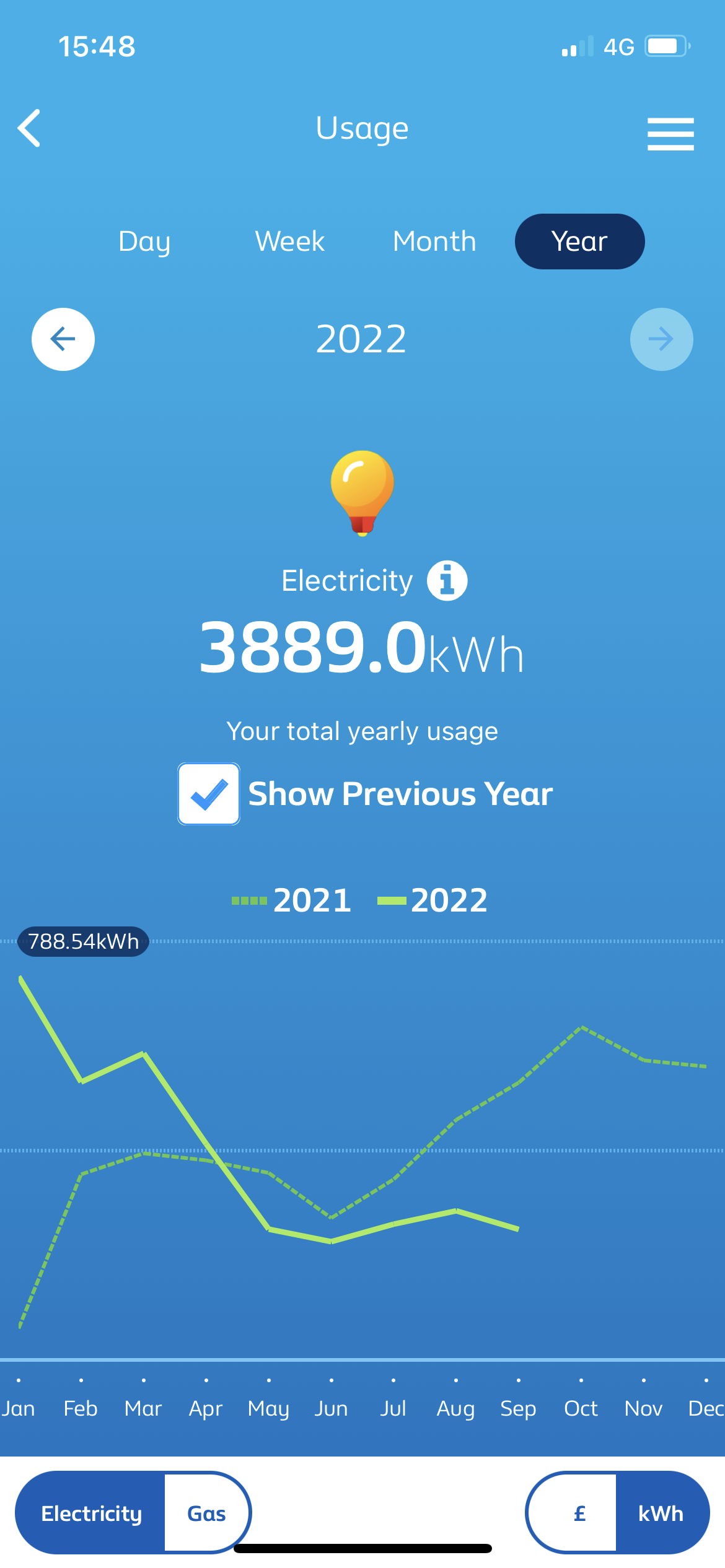 The usage shown is a little above average for electricity and significantly under for gas. Assuming you are on a variable tariff (and therefore protected by the EPG) you should pay about £1,500 for electricity and £715 for gas based on that usage, depending on your specific region.