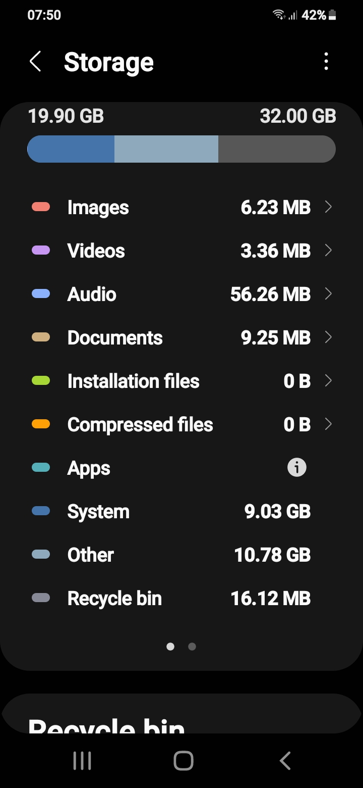 Wonder if anyone can help. My phone has 32GB of memory (i know but don't use it for much) however its now telling me i can't download Apps because i have too little space left. Ive taken almost everything off but still showing only have 3GB of storage left. When i go into Advance in Internal Storage in Settings tells me 'other' is using up 28GB. Can't think what 'other' may be? Please help!