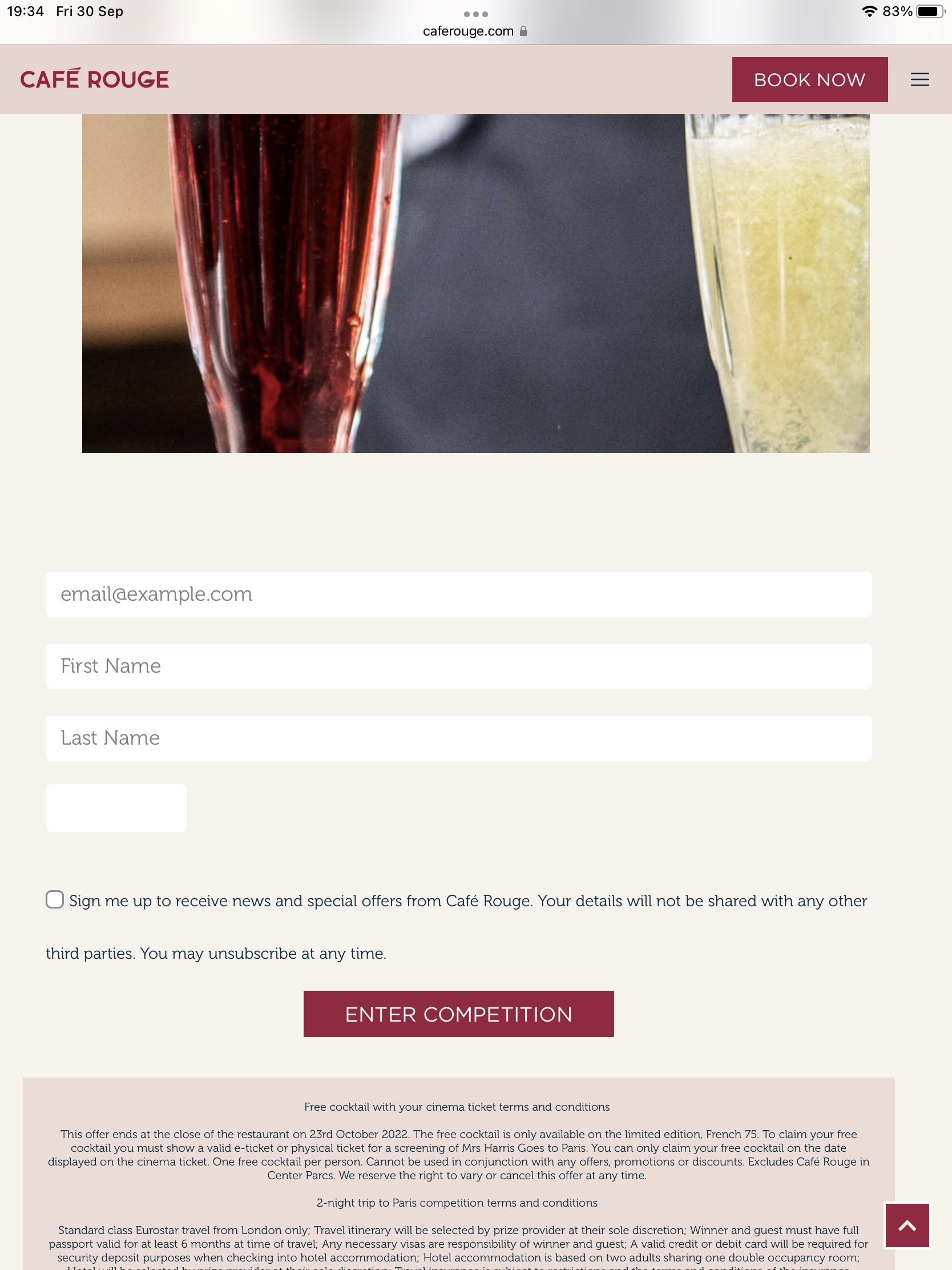 I have assumed the end date coincides with the end date for the cocktail offer as it is not explicitly stated in T&Cs.