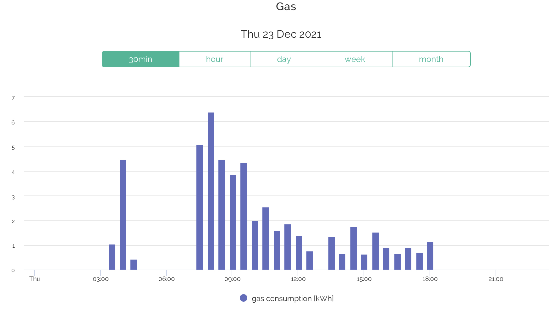 Get a smart meter and download the free App BRIGHT. This is my 30 minute usage for a 24kW boiler last December. Most gas boilers are massively over-sized for domestic homes.