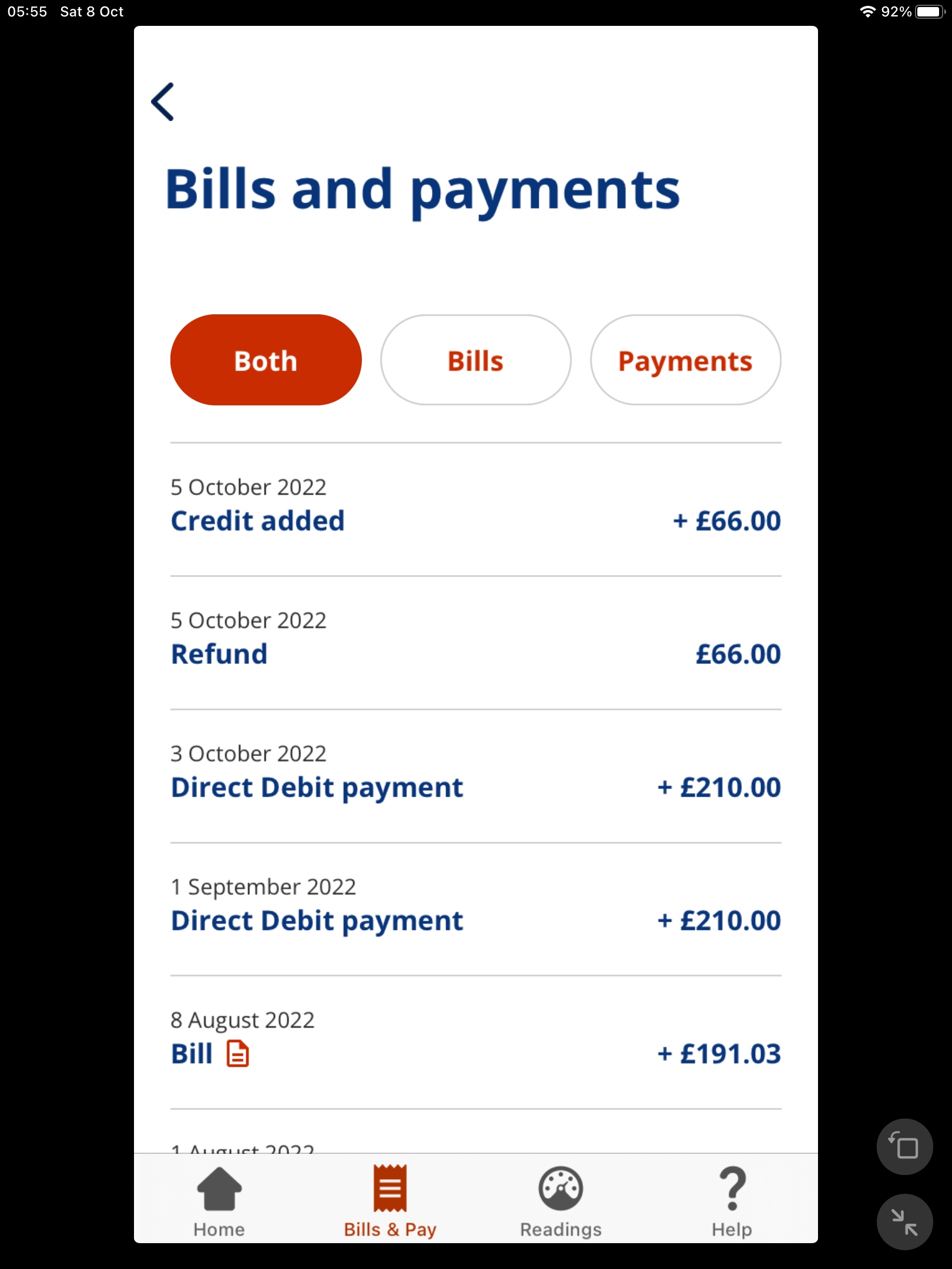 My last bill was for £67.19 and I my account was credited with £66 a few days after.