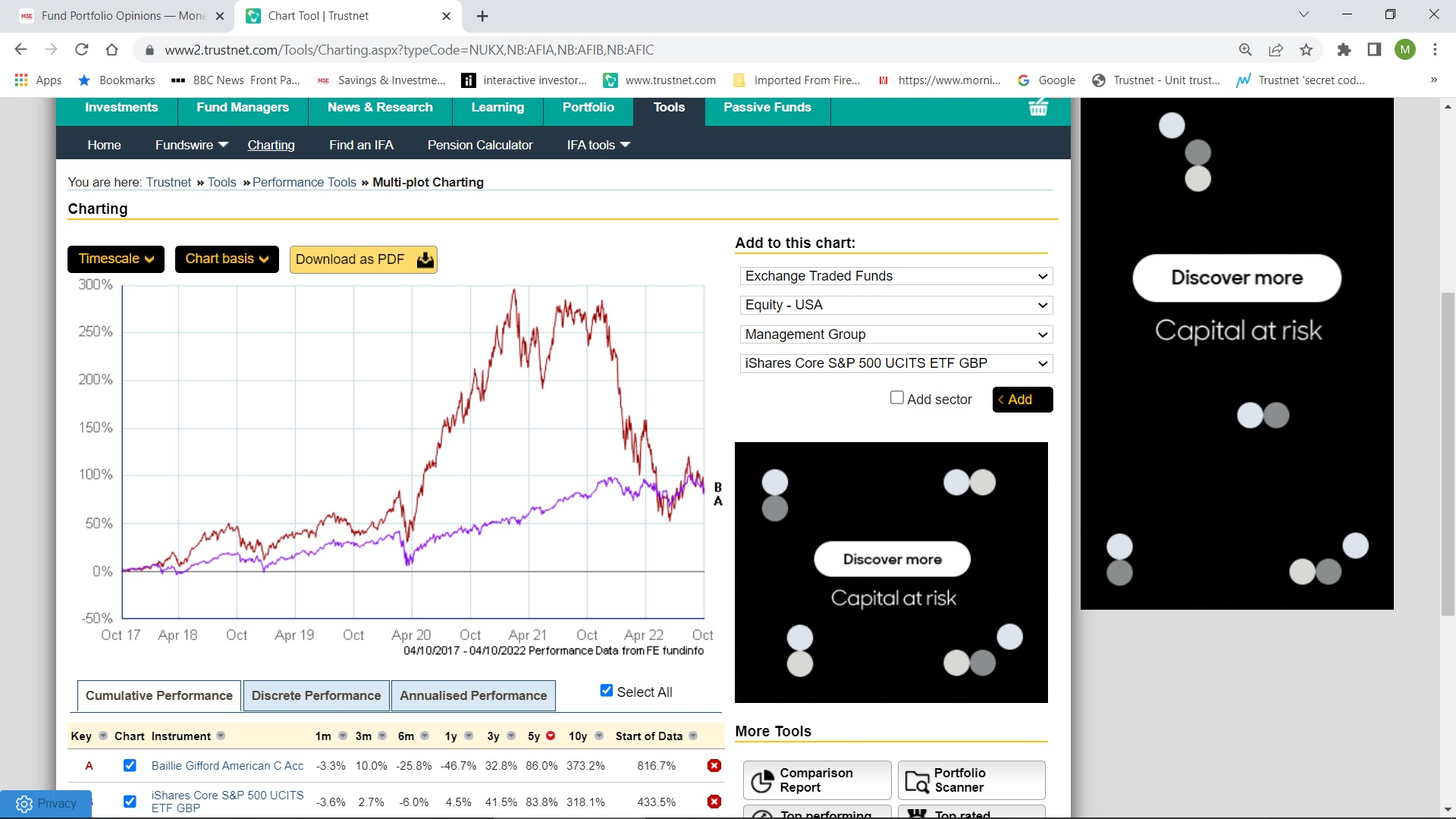 1) I would not describe Baillie Gifford American as medium risk. It is much more volatile than say an index tracker.