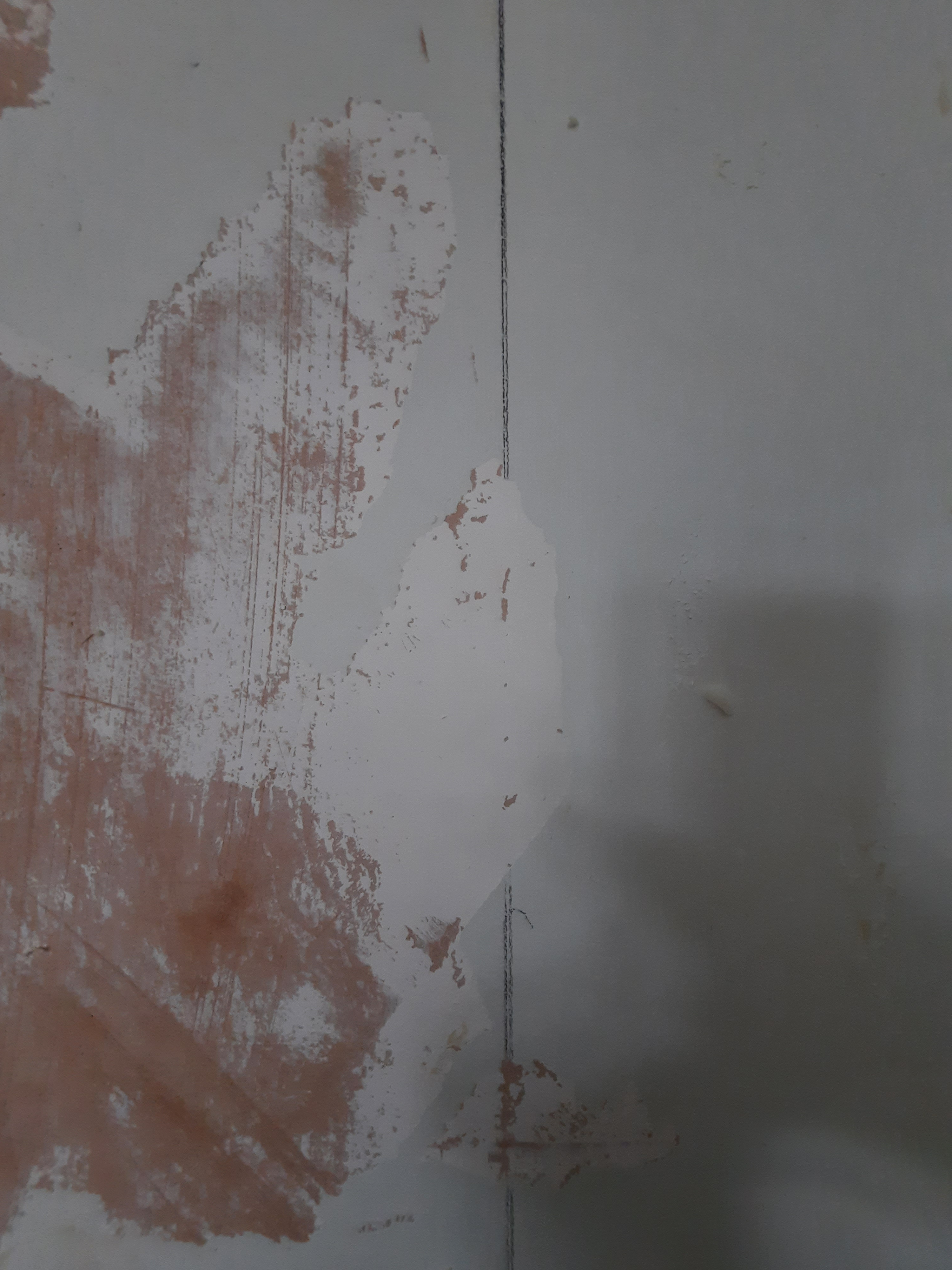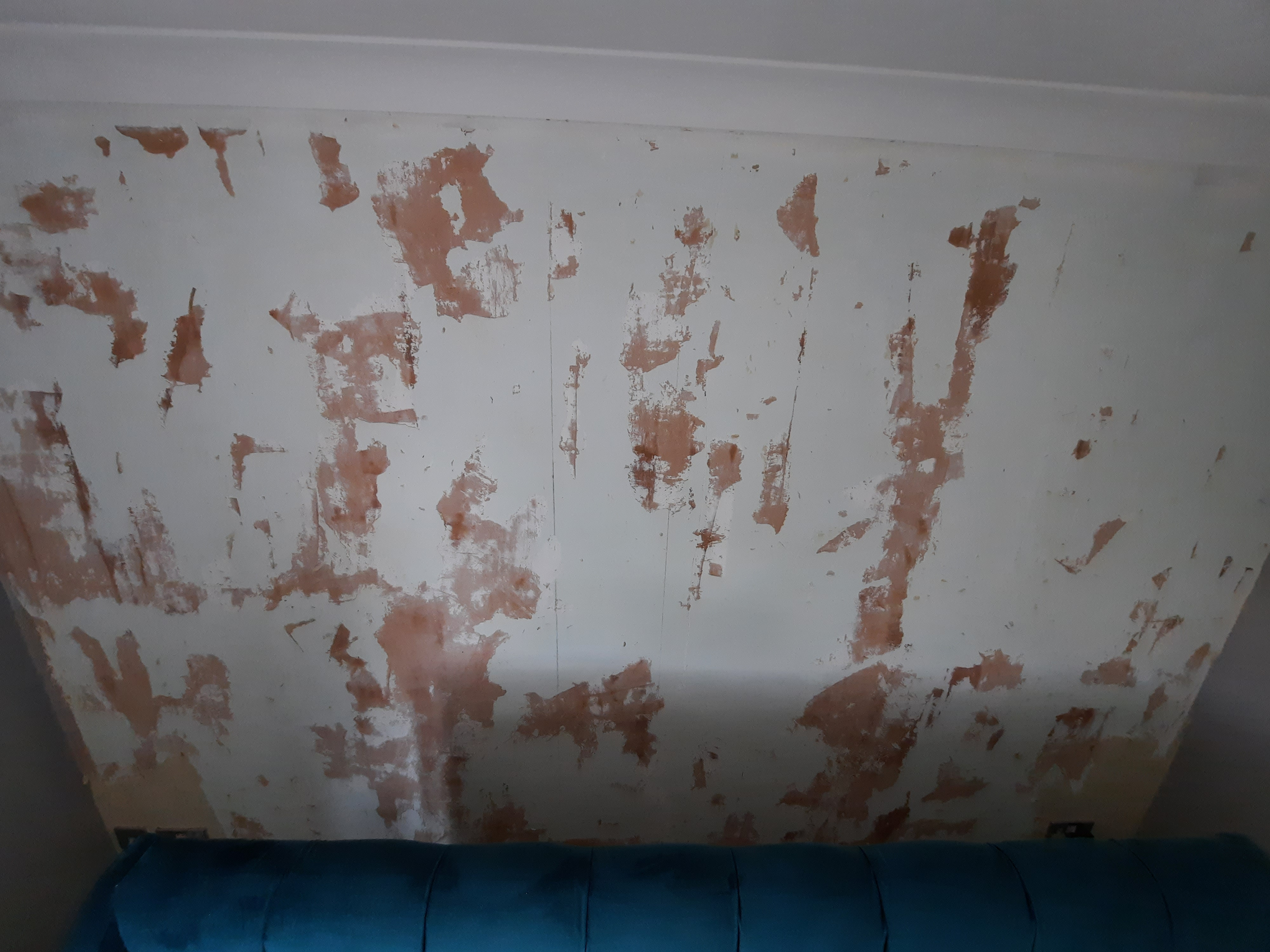 I'm not sure if the glue from the wallpaper in places has took it all off of what, my suspicion is that a mist coat wasn't done - wallpaper glue wouldn't pull off a mist coat, it sinks in!