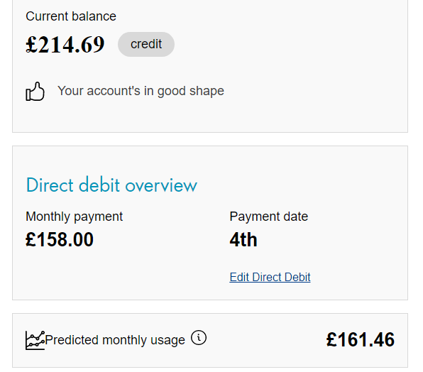 I'm then paying £128.59 for what? Another 5 more months of it being around £30-£40 then being in credit by £800 ish.