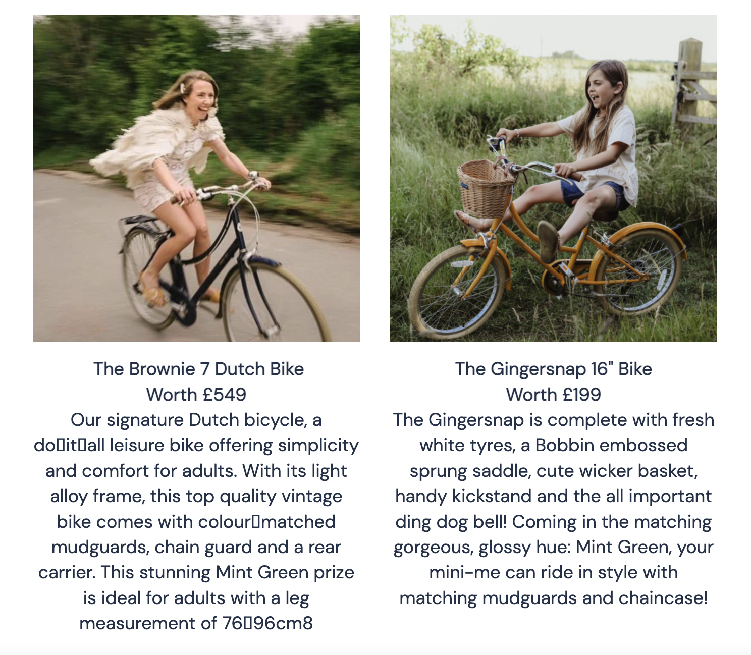 It's competition time, and this time we're giving away our biggest Bobbin bundle yet! One lucky winner will receive our best-selling adult bike, the Brownie 7 in Mint Green and our iconic Gingersnap 16" kid's bike!