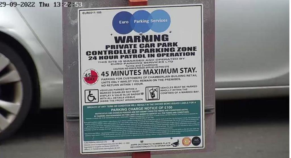 Also I was in the car park for a total of 7 minutes. As you can see below the 45 mins stay it states ‘parking for customers or chamberlain building retail units inly’0