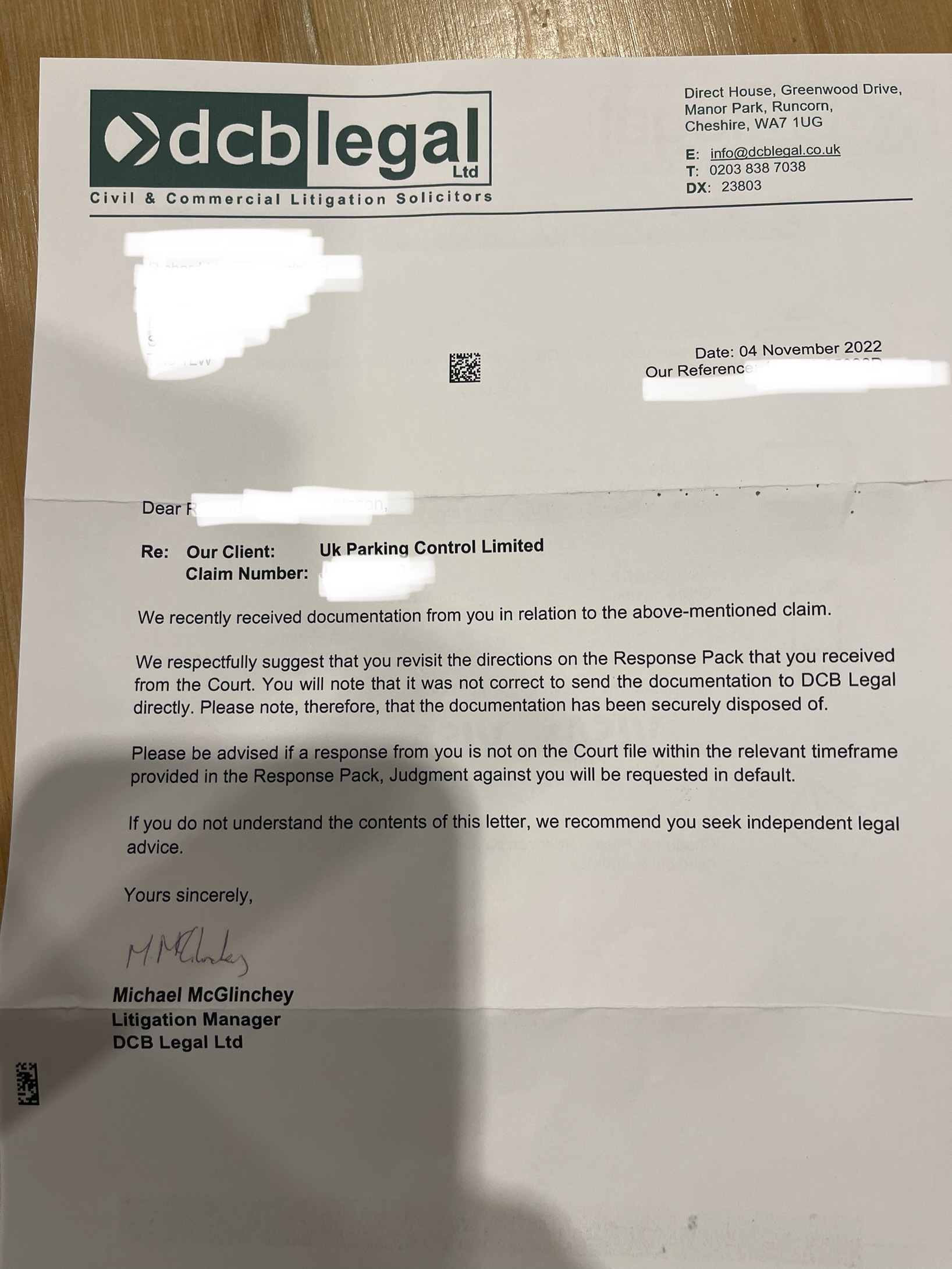 Advice needed regarding County Court Claim Form DCB Legal & UKPC