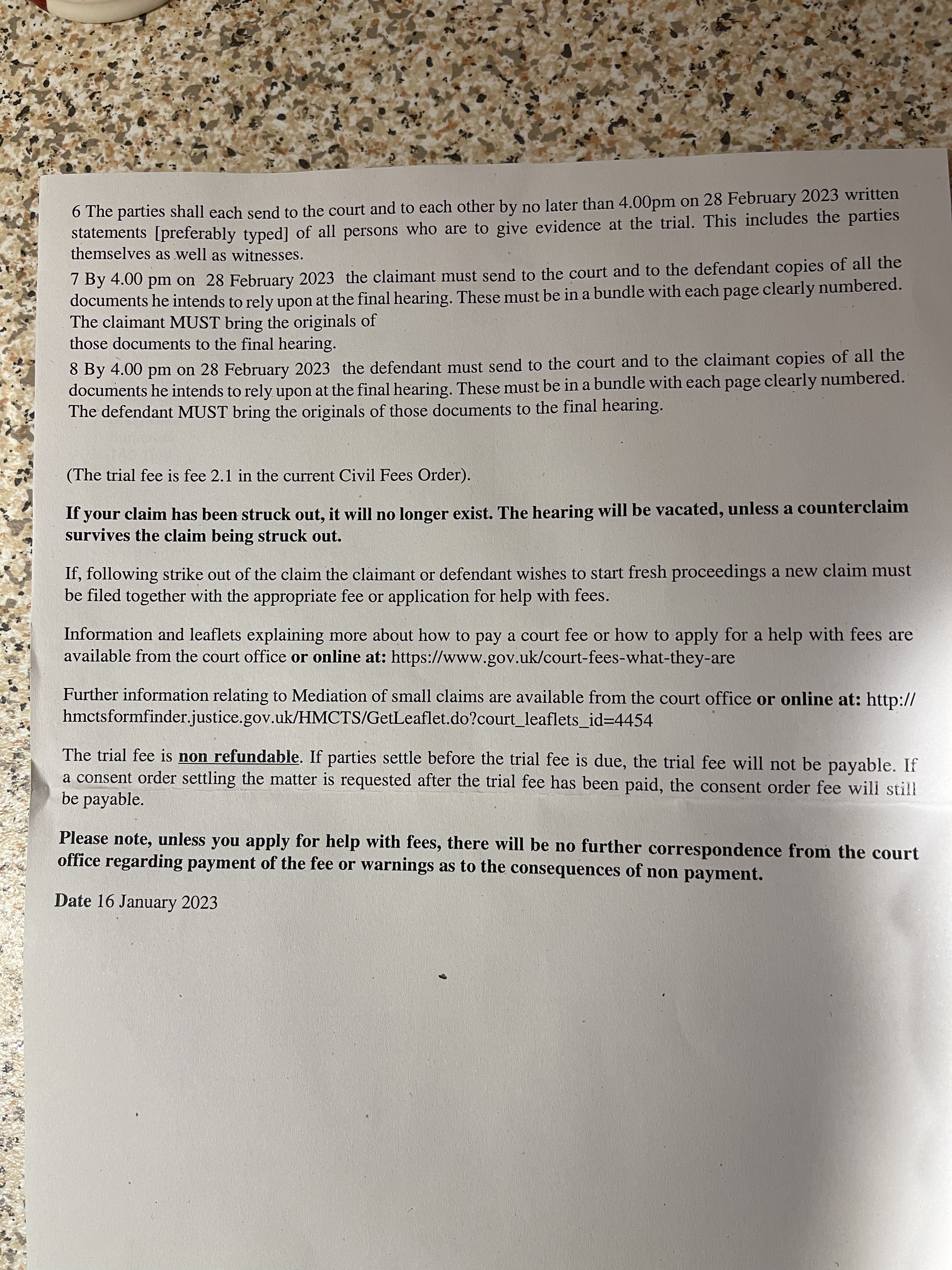 Update on my case have received court date and WS to be submitted by 28th Feb. I have been drafting it up over the last few weeks so well on my way just got to finish it off!