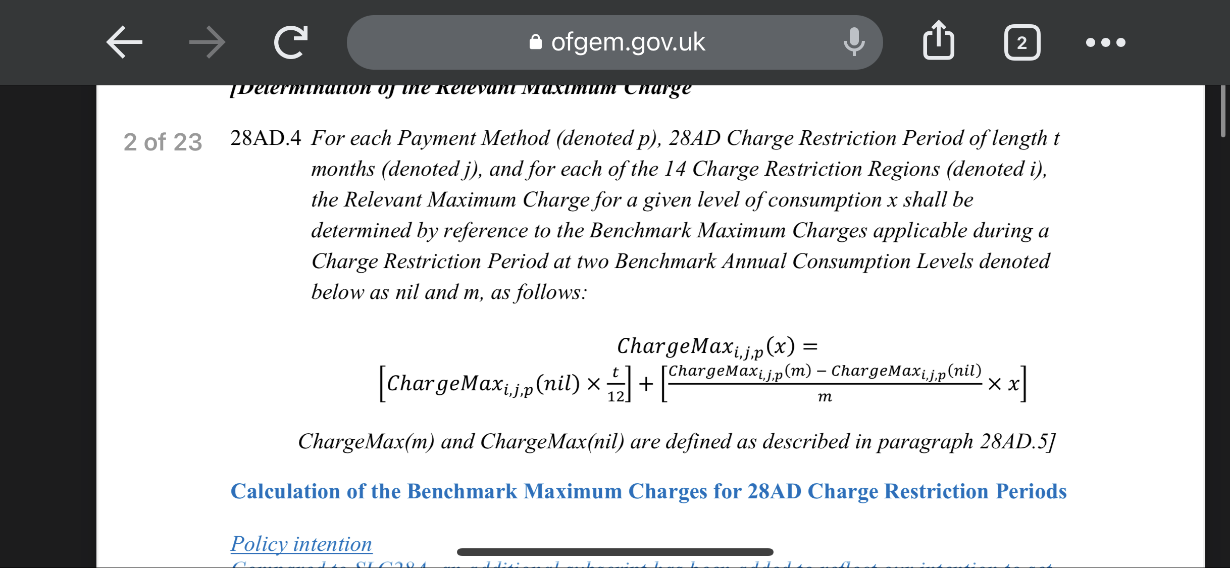 It doesn't negate that paragraph. The paragraph you quote says people cannot pay above the relevant cap level. The wording for the relevant cap level in the licence condition is Relevant Maximum Charge, or ChargeMax(x) in the equation. There is no point in the equation that limits x to be only 0 or 2900.Sailbad said:The formula you show merely shows how to calculate a bill for a certain number of months using the cap values for nil units consumption and 12000 units consumption for gas. It does not negate the paragraph I quoted from Ofgem...