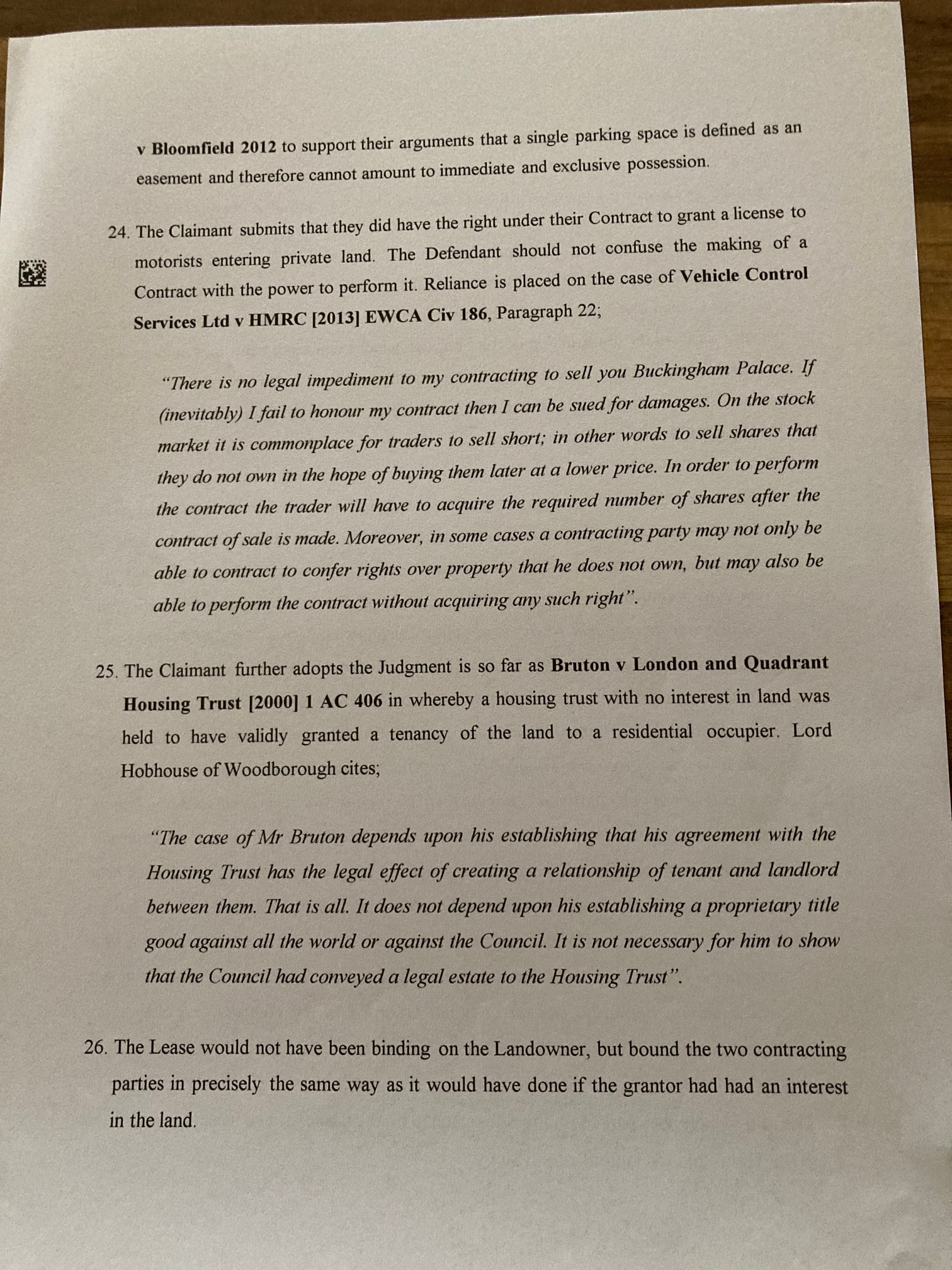 Here is an extract from their WSCoupon-mad said:Show us that! Normally it's defendants who use Kettel v Bloomfold to demonstrate that a managing agent cannot move the goalposts and remove or adversely change the arrangements (or charge money for) an easement already granted.
