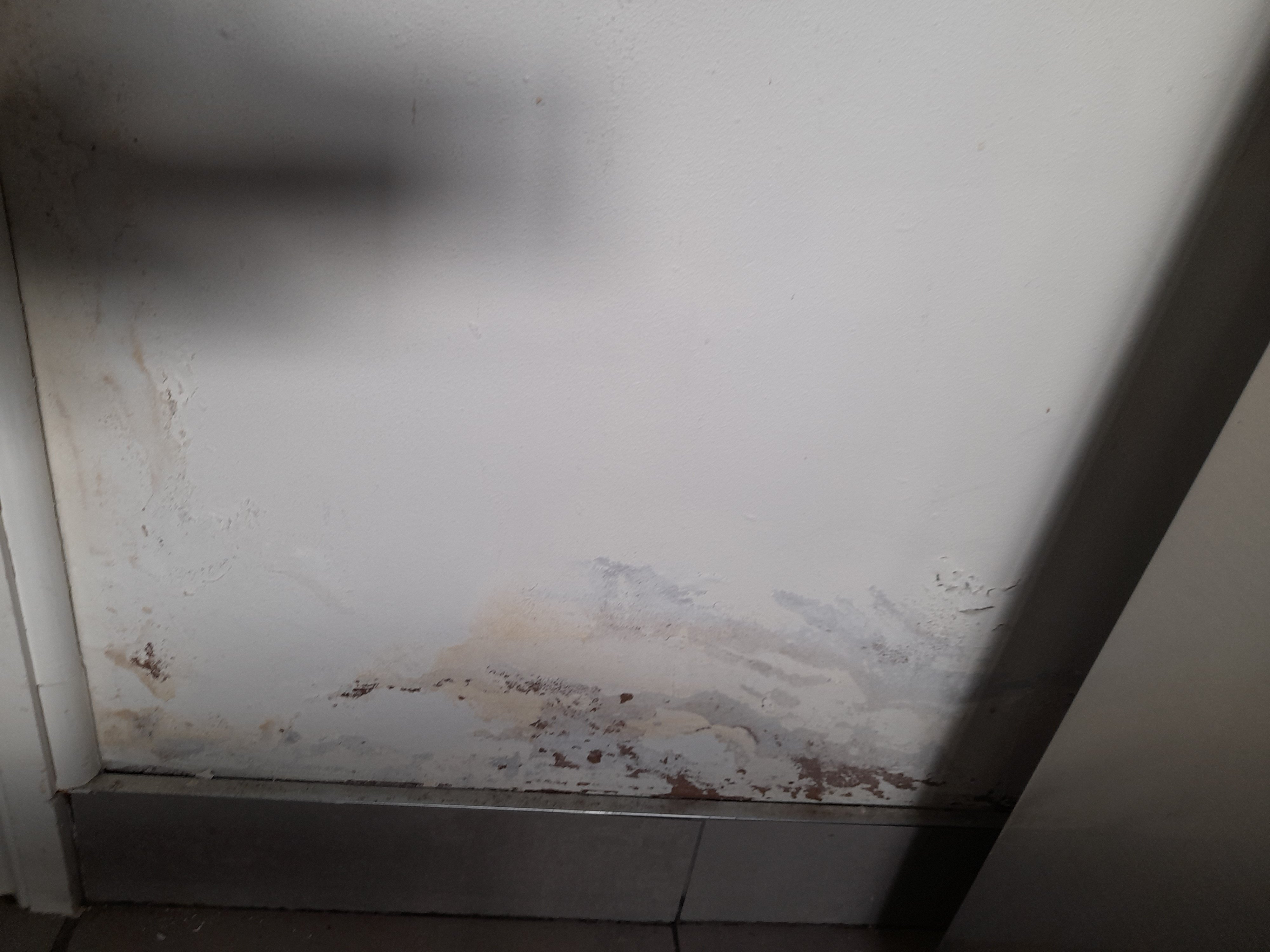 What is going on up the right hand side of the door? It looks like a trail of brownish damp-staining down the wall? And that scuff mark on the paint on the door surround - what has caused that? Have you had a piece of furniture against this wall?0