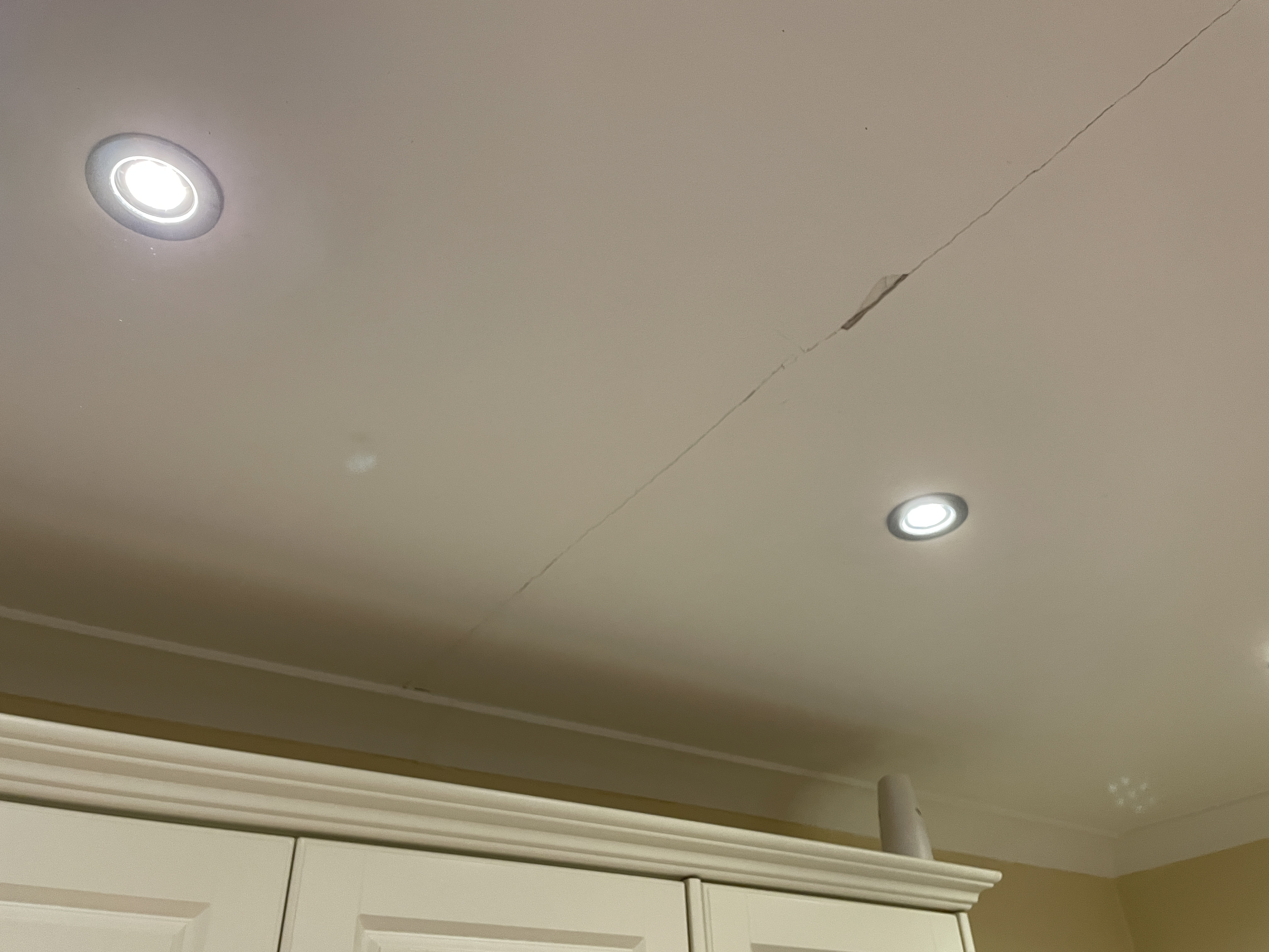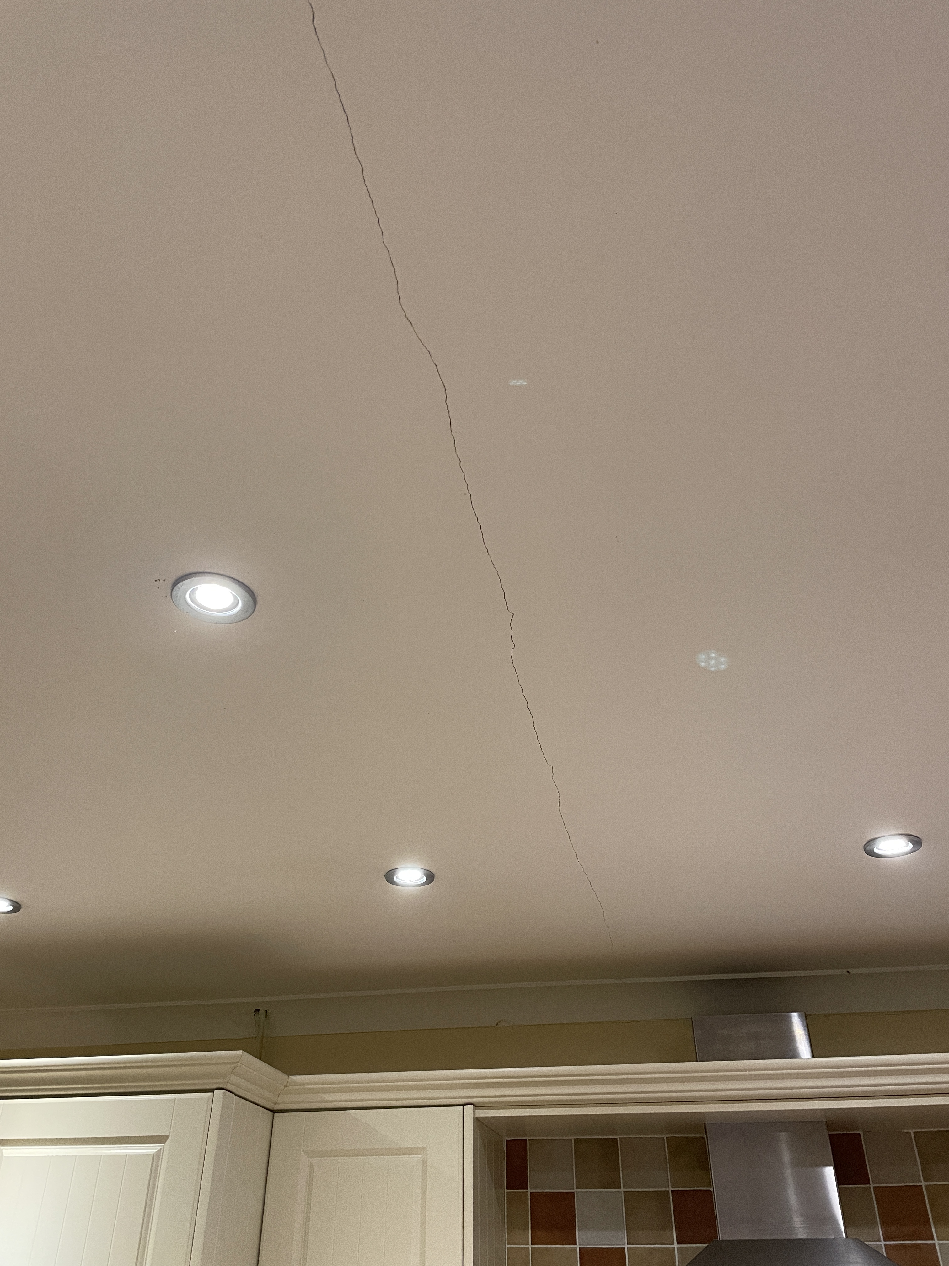 There has always been a fairly straight crack across our entire kitchen ceiling since we moved in. It goes edge to edge, even down into the coving. I figured it was just where the plasterboard joints had been and somehow had some movement over the years and planned to tackle it whenever we renovate the kitchen.