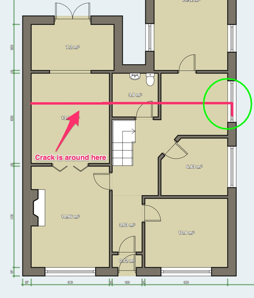 greensalad said:It's a dormer extension, it doesn't go all the way to the edge of the house. I'll check when I can bear to go outside in the rain where the dormer ends in relation to the window!Yes, I'd picked up on the dormer point in your earlier posts. The point was that if the pink line represents the presence of a structural element then you'd expect it to continue across to the right-side wall. The alternative - if it doesn't - would be for the structural element to be cantilevered off the downstairs cloakroom walls, but that would be a bit of an unusual approach (e.g. it wouldn't be as cost effective).There are other alternative scenarios, but my point was you need clarity on where the different walls are relative to each other.0