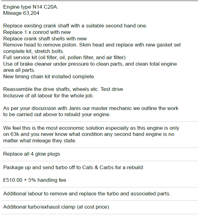 Hi, I'm after some advice. I had an engine rebuild earlier in the Summer as below: