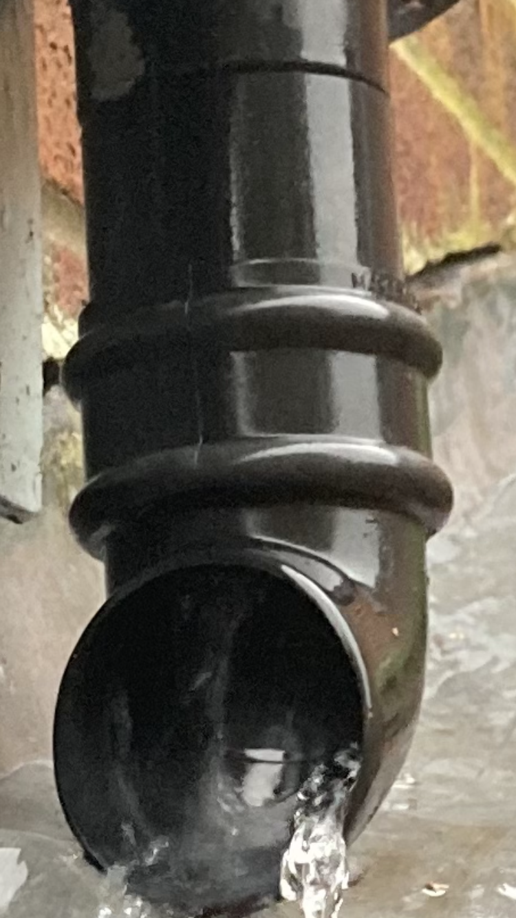 This time the bottom curved part corner downpipe (?) came away in front of my eyes in heavy rain. Tried to fix it back but aware it’s not at the right angle. It was the only way it would stay on.