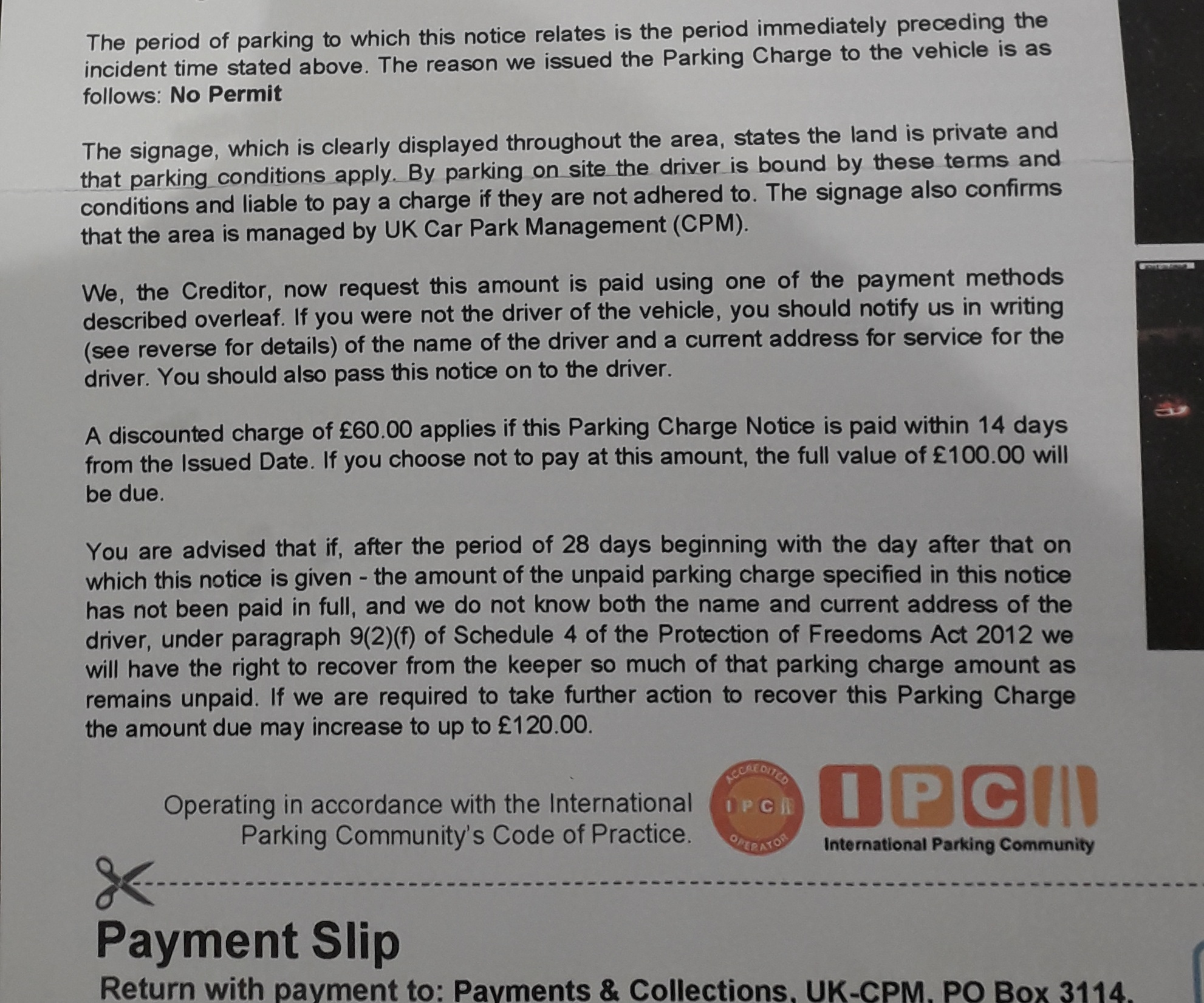 UKCPM?PRIVATE 'PCN'? DON'T PAY BUT DON'T IGNORE IT (except N.Ireland).