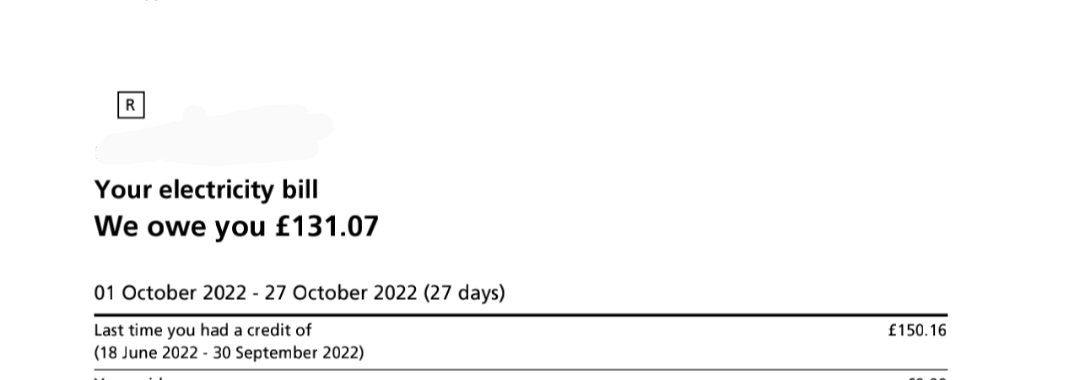 October's bill was less than the credit so the bill amount was deducted from that, and then the £66 added to it. I'm expecting November's bill to also be less than the existing credit so a similar situation will arise.