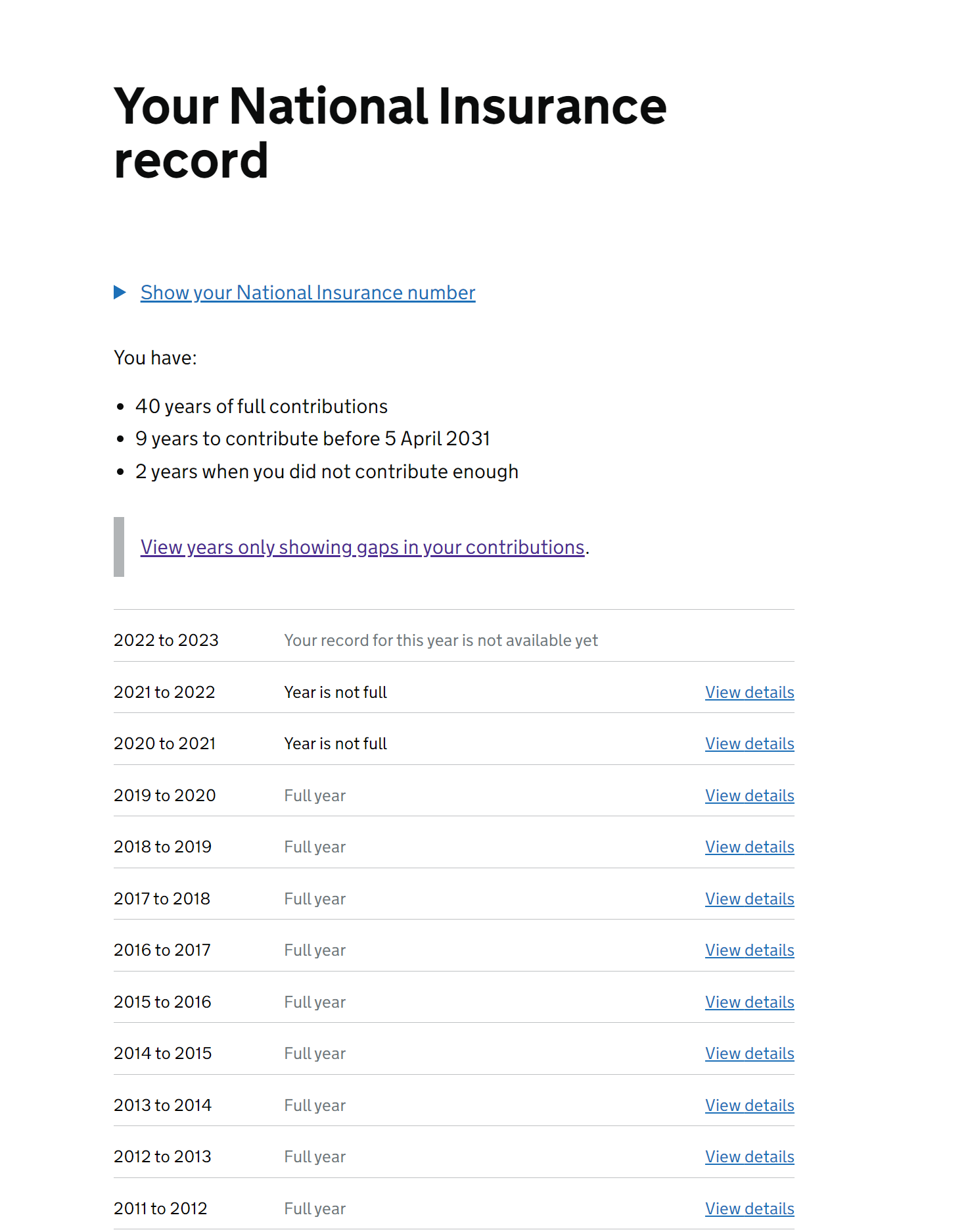 It should say on the prediction whether or not you need to make further contributions/whether doing so would increase the state pension you are projected to receive. If you're not sure, please could you post a screenshot of the relevant part of your state pension projection (minus any personal identifiers, of course).KD2112 said:Hi, I have taken early retirement at 56 but have 40 full years NI contributions. Could you tell me please, does the 40 years guarantee my full pension ( as also shown on my .GOV prediction ) even if I fail to pay approx. 11 years contribution from now until retirement age ? Hope that makes sense, kind thanks. KeithGoogling on your question might have been both quicker and easier, if you're only after simple facts rather than opinions!0 -