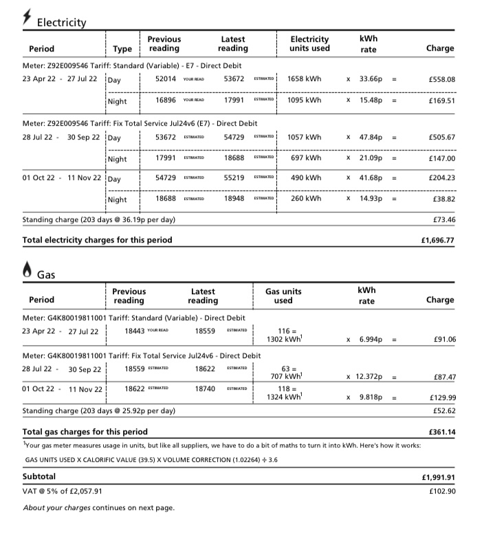 I am I am with EDF and a year ago I was on a standard variable rate and was paying £134 a month (I have a 3 bed home). My bille went up to £313 earlier in the year and in July due to advice I signed up to a two year fixed tariff. This didn’t come into effect then and it was only yesterday (17th Nov) that I was informed by EDF that my tariff had started, was backdated to July; meaning a £560 underpayment and my direct debits would be £580 a month. My usage (gas and electric) is average and the £2500 average amount that households are supposed to be paying is way off this. Are other people being charged the same? Would it be better for me to change providers? Thanks