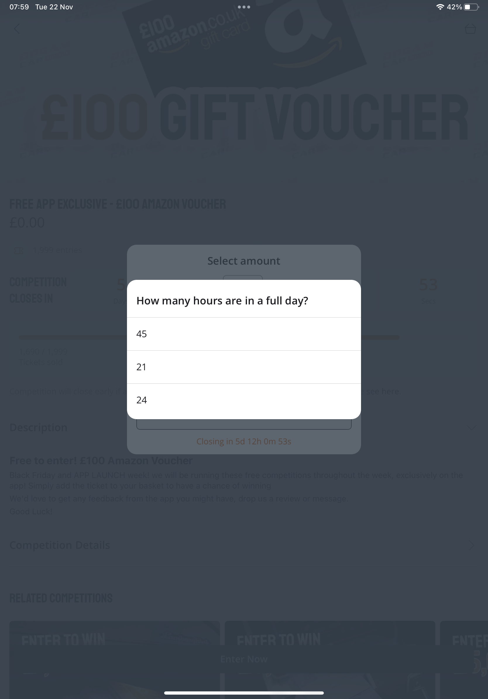 E: 27/11 £100 Amazon gift card (app required)