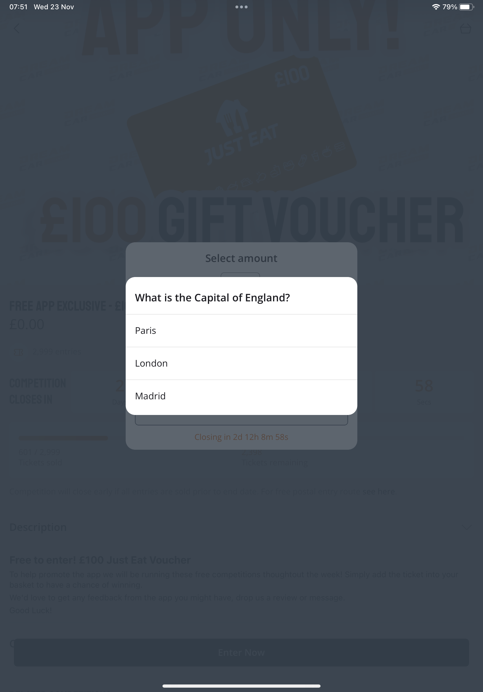 E: 25/11 Win £100 Just Eat voucher (app required)