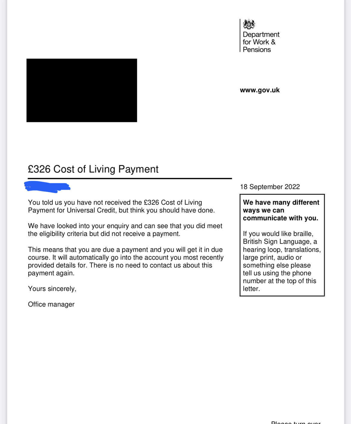 I didn't receive my first COL payment so I fill in the missing payment form. I was then sent a letter confirming that I should have got it and payment will be made in Due Course. Still waiting 2 months on. I have contacted universal credit and they say the payments are nothing to do with them.