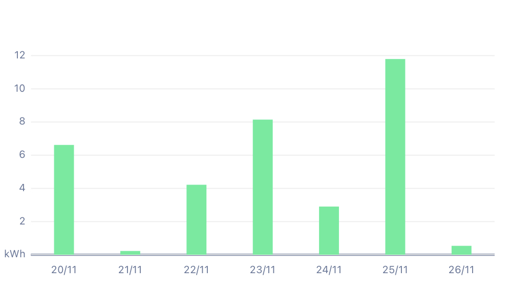 I am considering solar panels. I would be interested to know how much energy you produce on a cloudy and wet day in say November (such as to today in south England).
