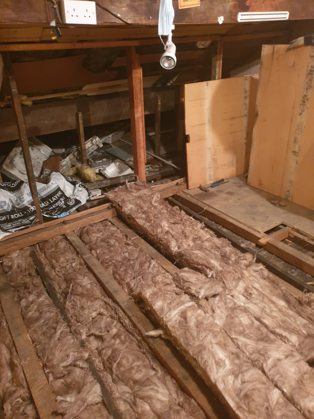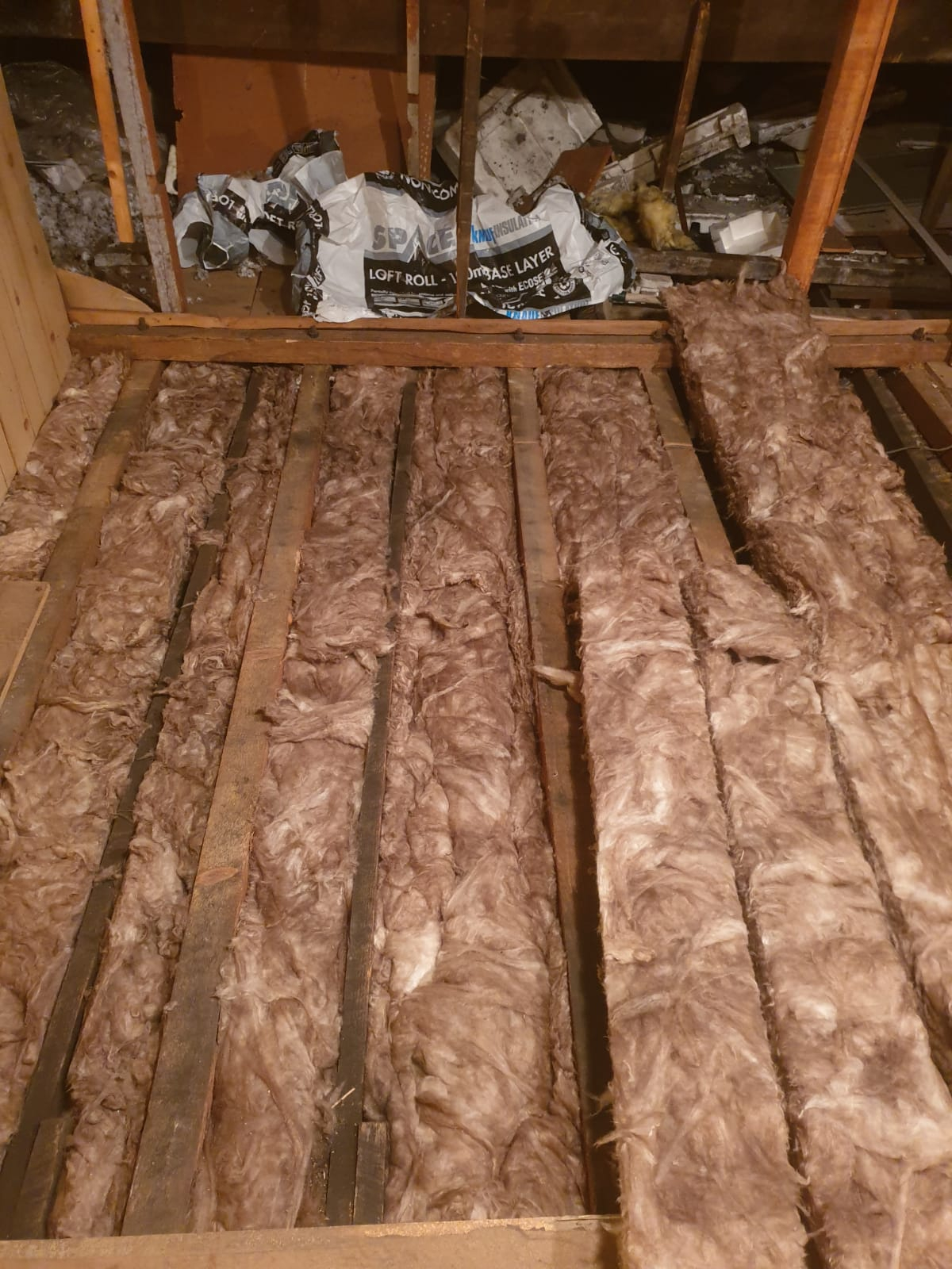 Half of the loft has been cleaned out and base layer insulation put down and i can already feel the difference. The loft didn't have any insulation in between the joists.