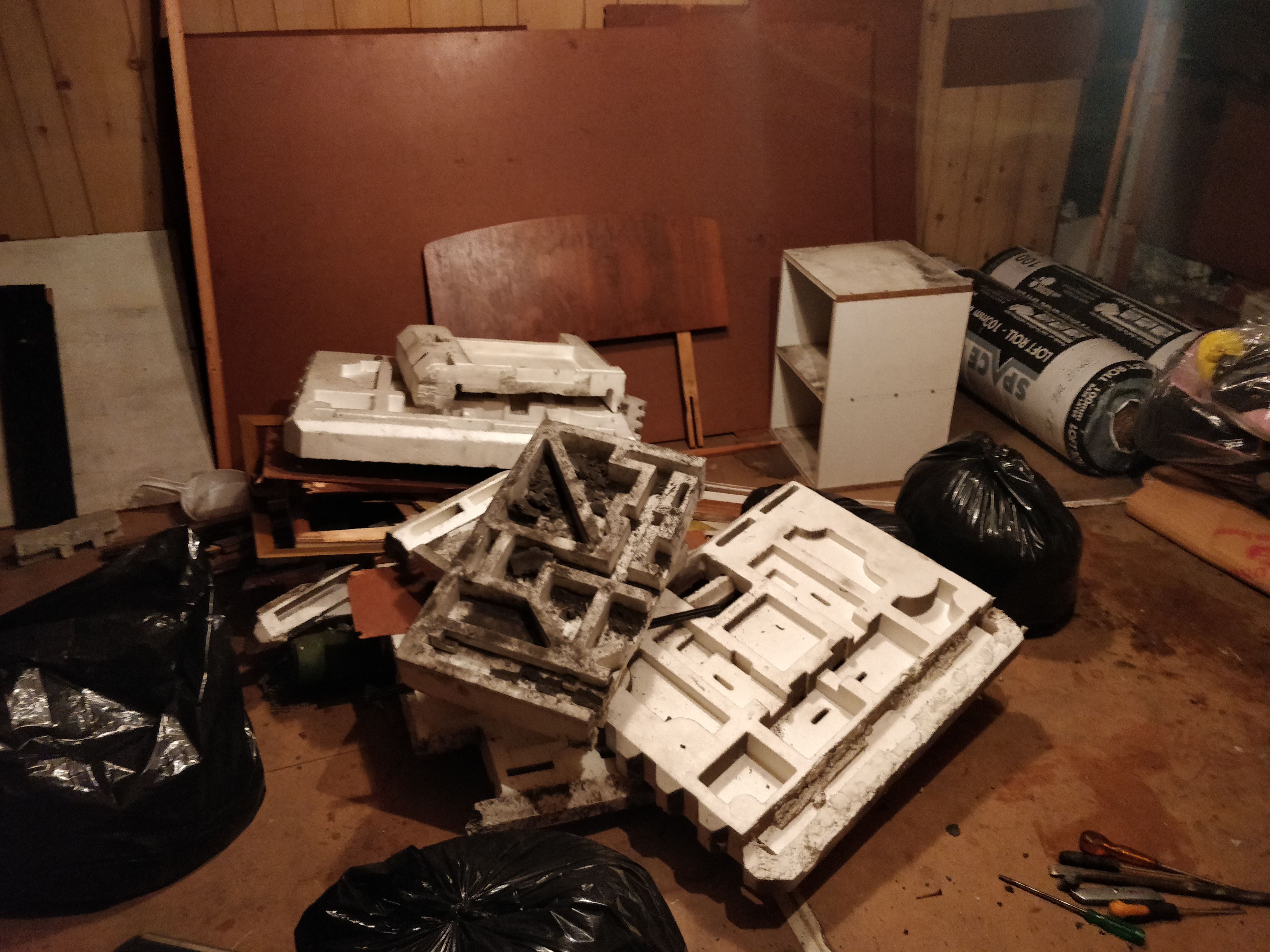 Some of the polystyrene was recycled. Some you could tell we're new and cut to size. I've gotten rid of it all, cleared up all the crap, and sorted out the wiring and it all looks neat. I can sleep a little easier tonight knowing that the work I've done is going to be better in the long run for me and my family. I have the back of the house to sort out now - so much crap to clear out - it's going to take a full day of cleaning.FreeBear said: