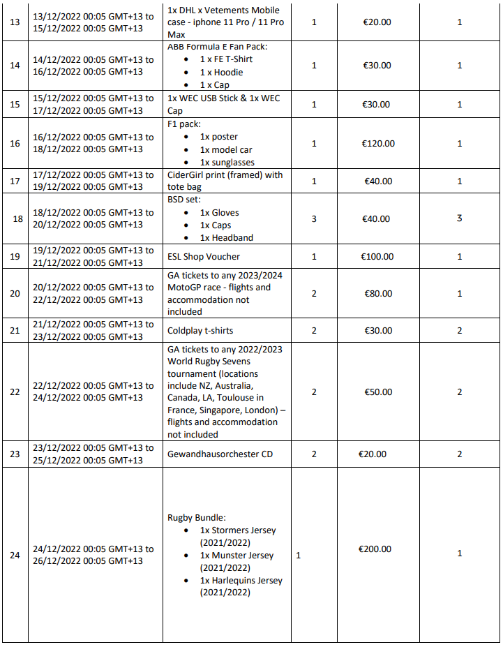 I don't think the details of all the prizes have been posted before. You can see here what is actually being given away.