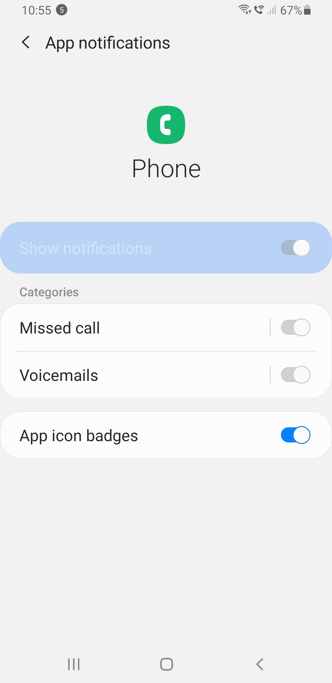 I dont know why Voicemail is greyed-out. Presumably thats where I could set the notification to alert me on the badge theres a voicemail waiting.0