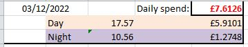 My day rate is going up again on 1st January to 54.97/kWh so I am exploring ways of getting more of our day usage onto night usage.Debt Free: 01/01/2020