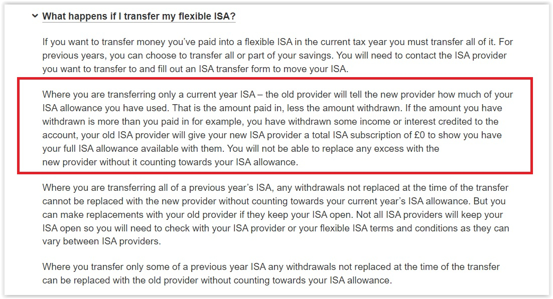 I don't think I've lost any allowance so far! I haven't opened new account yet and My Coventry ISA says in black & white I can pay in up to £75K before the end of this tax year. Its flexible and I have filled it up before end of each tax year for last few years as per MSE article below (this is exactly what I've been doing).Johnjdc said:Victorwelldue said:Thanks I didn't realise that. So does that mean if I didn't replace it in the original account first then I'd essentially lose that £75K allowance forever and would be starting from scratch at £20K per year again? Also if I do decide to replace in original account first does that mean I wouldnt be earning interest on £75K for the time it takes for transfer to complete?
