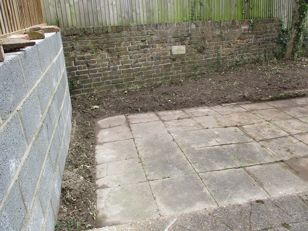 Photos of one side of the back garden - looks bigger with the greenery gone.