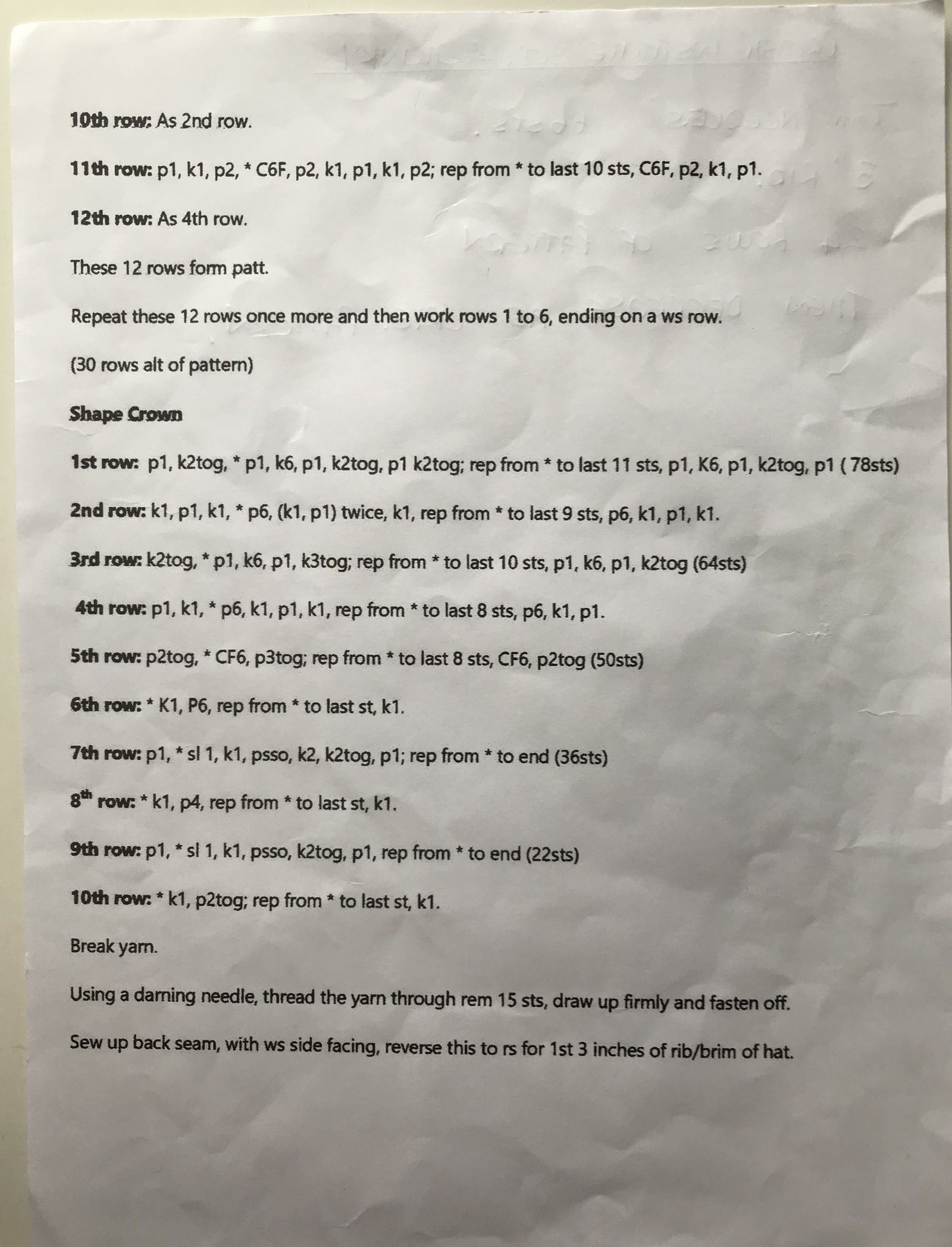 I have finished the second hat in thicker wool & I can see the pattern more distinctly 🤞See photo below