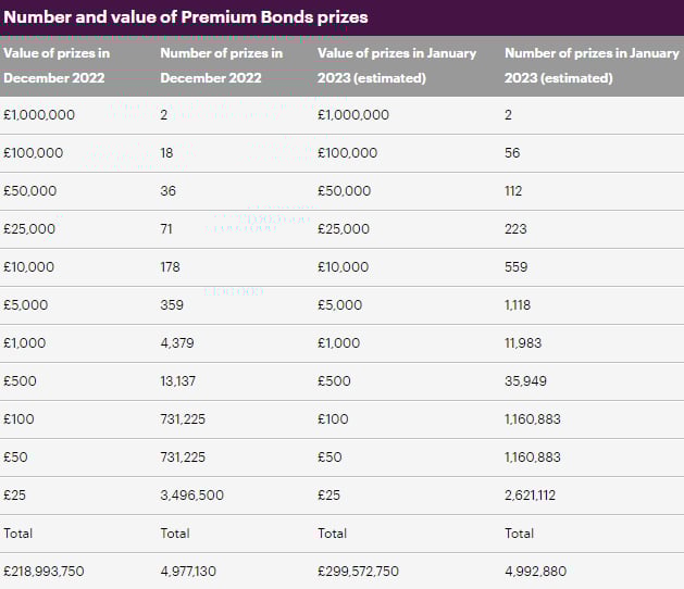 NS&I Chief Executive, Ian Ackerley, said : “The New Year increase to the Premium Bonds prize fund rate will mean that customers will have seen the prize fund rate triple in less than a year. This means a bigger prize pot and more higher value prizes for our customers – a great way to start 2023.