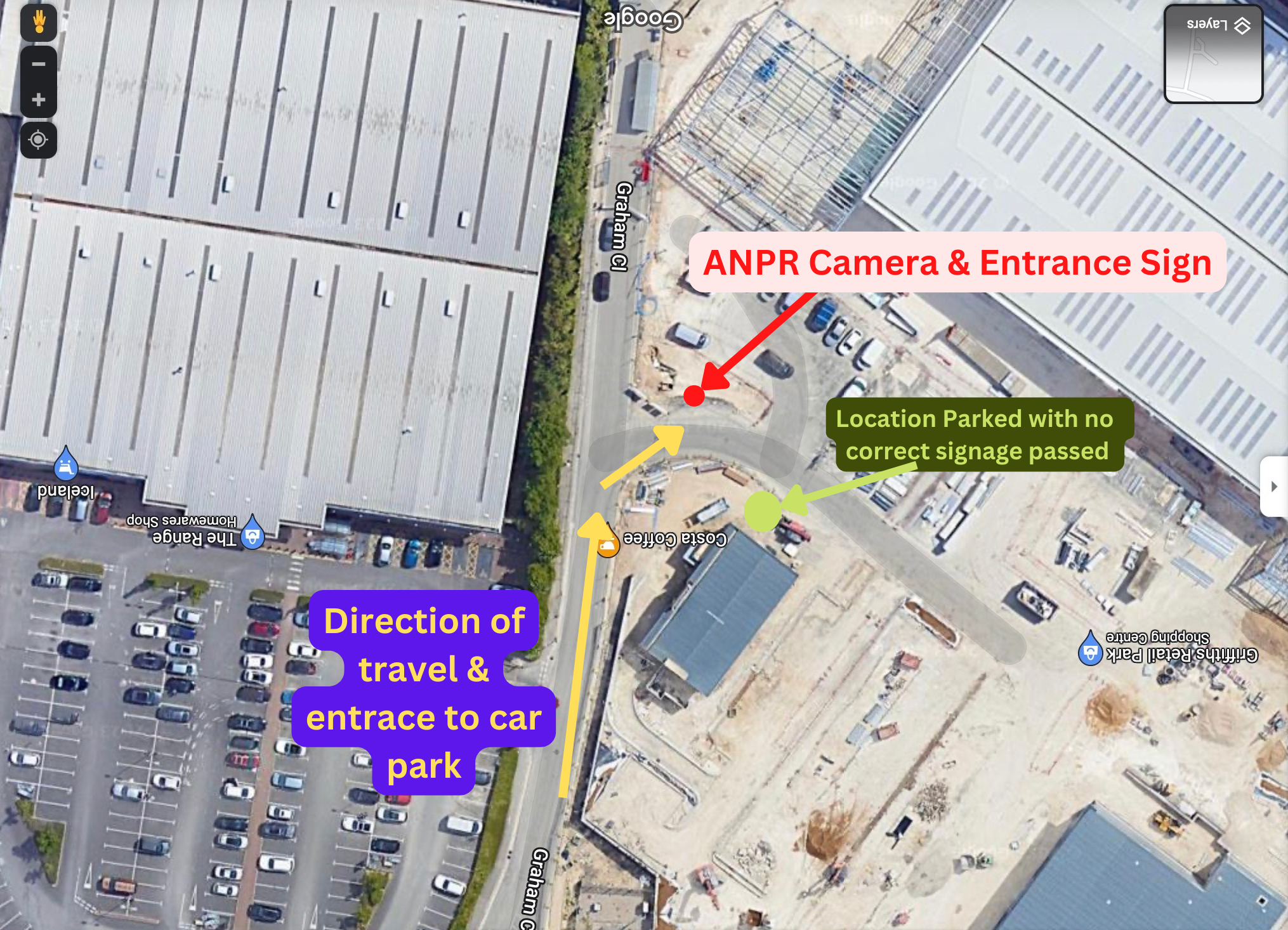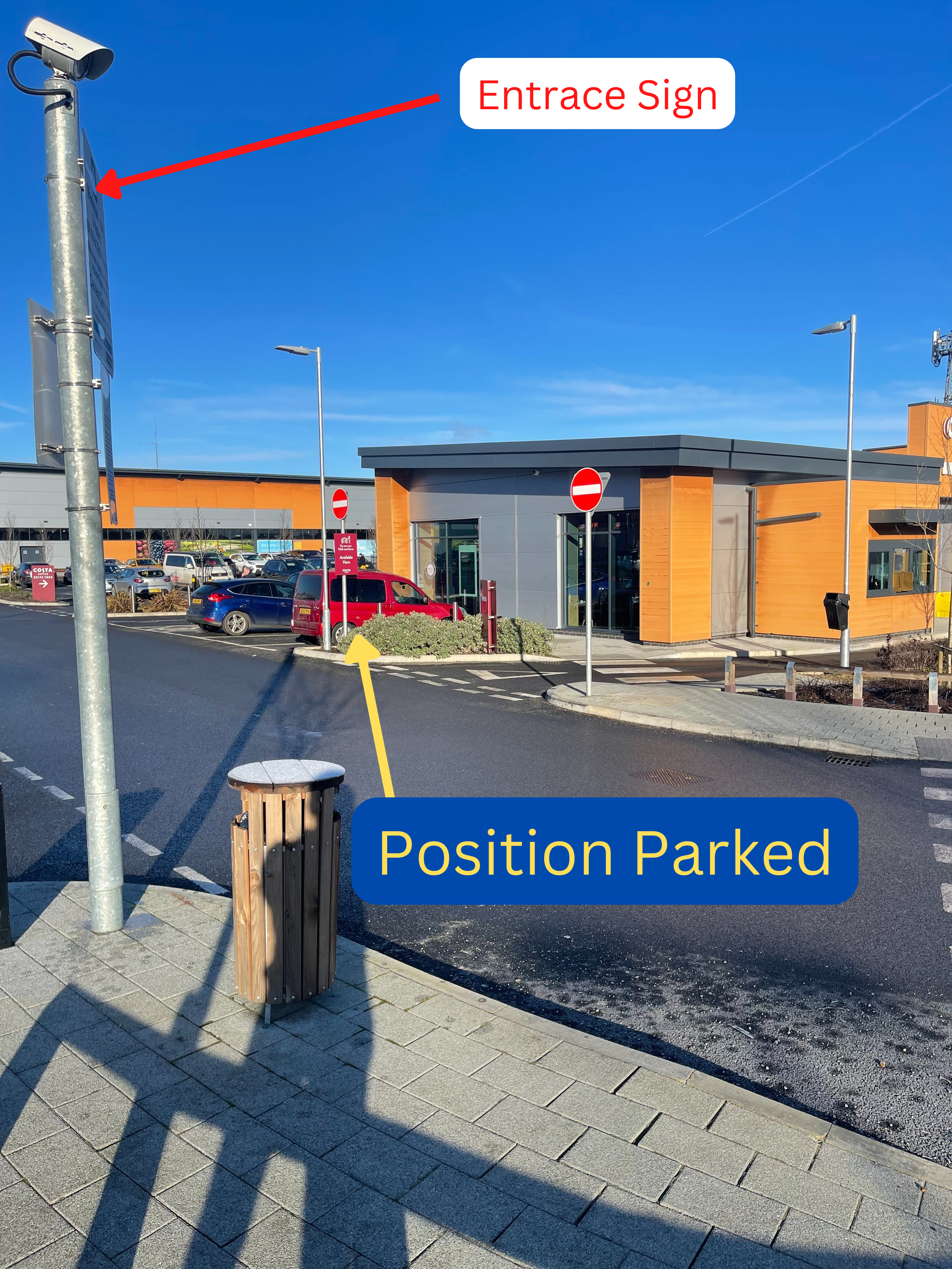 The driver of the vehicle passed this entrance sign and parked in the nearest spot outside Costa. There is no other signs in view to the driver that any £100 Parking Charge Notice applies if they over stayed the set free period.