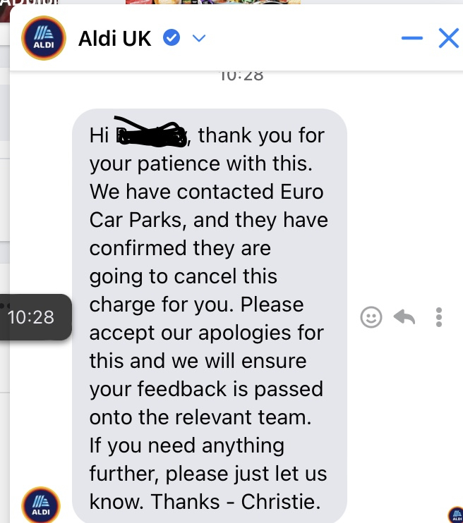 "as the car park is not managed by Aldi, we would recommend appealing your parking charge directly with the issuer". I have since responded stating that my initial appeal has been rejected and require further support from them to assist, they are looking into it again and awaiting their response.