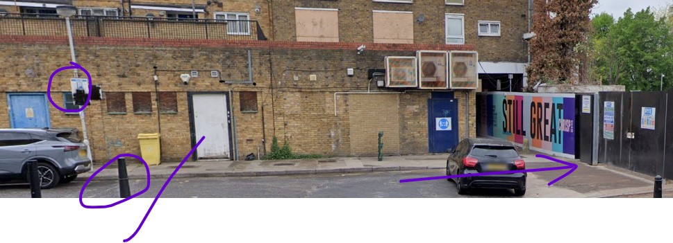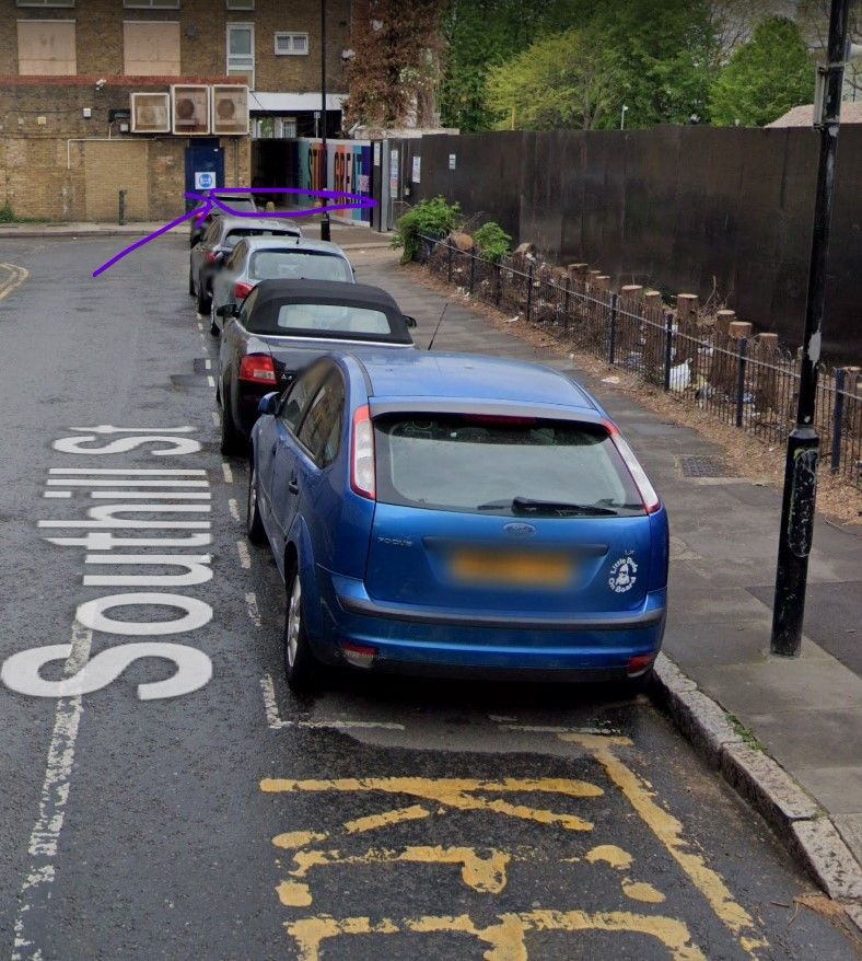 -- Here is the images highlighted in yellow where my car parked (it looks partly my car was on footpath though), there were empty spaces where the black gate is now and there was definitely no ukcpc sign in front. The private parking started from behind the car.
