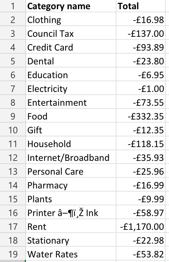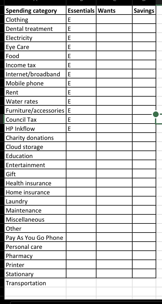 There are items I would trim.If I were filling that in I would have quite a few categories with sums for both essential and wants - eg food, clothing, furniture.Your budget is notable as the first I have noticed that has a separate category for ink!But a banker, engaged at enormous expense,Had the whole of their cash in his care.