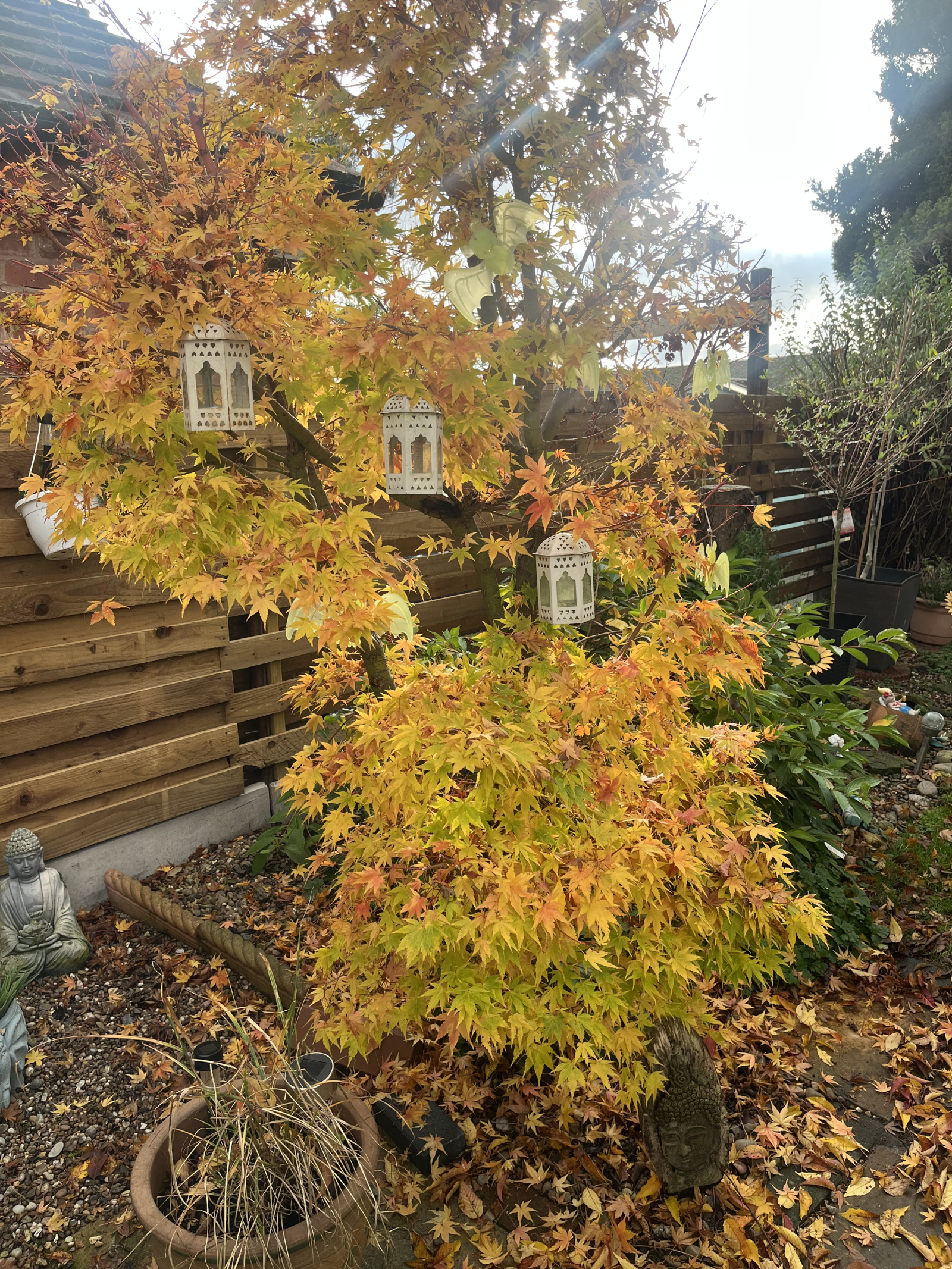 That's a lovely acer. I like the leaves: they bring extra sunshine at a time of year when we are beginning to feel the need of it. I'm going to compost what I can catch of our leaf fall. Send out a search party if I'm not back by Christmas.