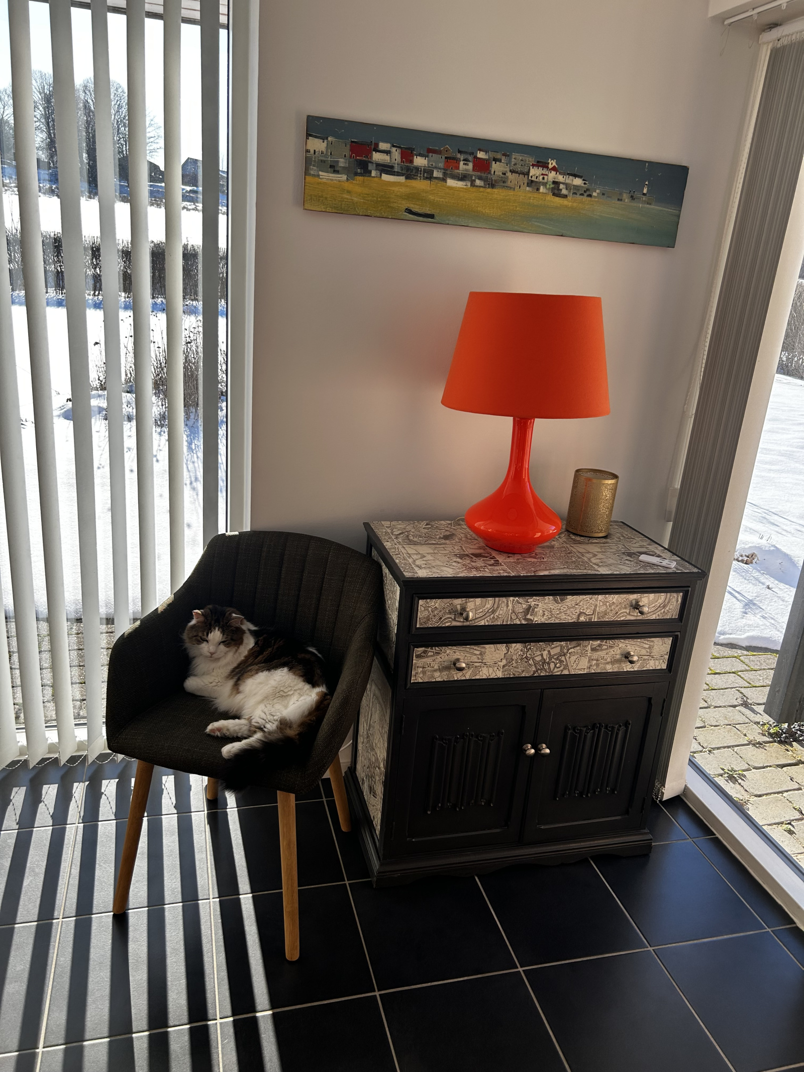 Your painting looks super, lovely colours. A job very well done. Glad the cat loves the chair a great spot to sit and watch the world go by. Enjoy your anniversary lunch. One year already, time really does fly by! Congratulations.