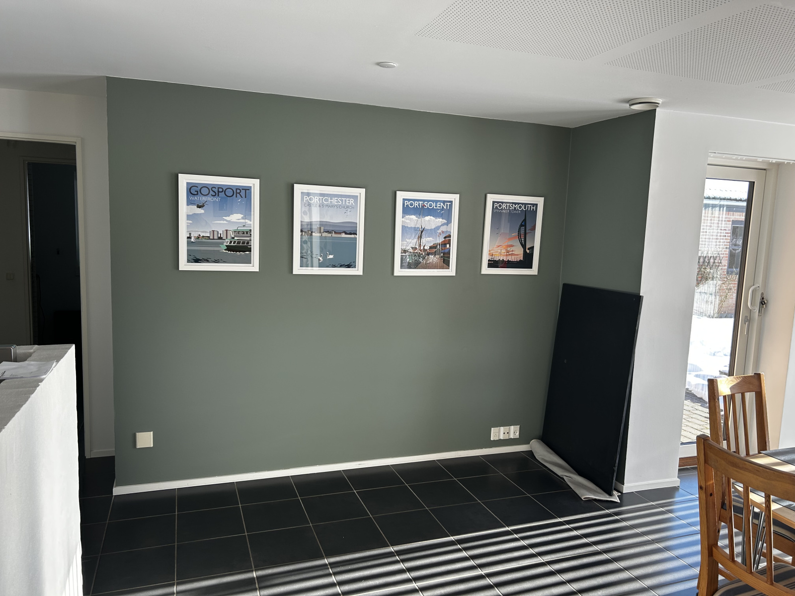 I got the paint and the shop is actually lovely we could have got loads of art supplies in there too and proper advice not like the DIY shops. I got a pink that matched the William Morris print and also the green that will be the same colour as our new kitchen units. I have finished the bedroom just needs to dry. It is darker than I thought it would be but I like it it is bold so might just need two walls doing. Just started on the green and I do love that. It is so calm but also pretty. I should have got DG to move the work top for the new coffee station as it is slate and so heavy. It is actually a coffee table top but we are going to use it for the kitchen. I am going to see how much I can do without having to move it. I might be able to lay it down.
