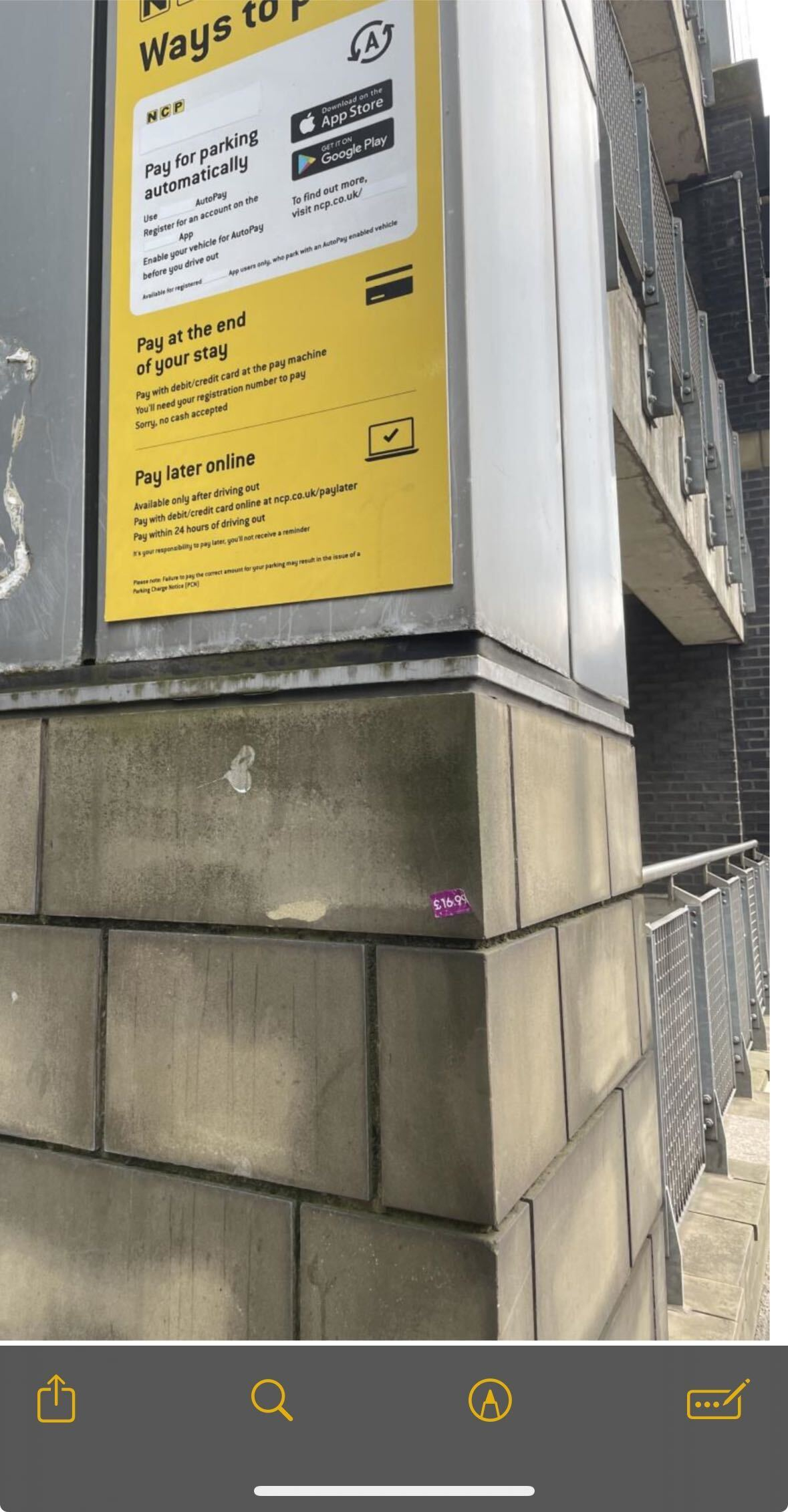 I also provided logs from Apple showing that we immediately downloaded the NCP app and attempted to pay on exiting the car park. But you can't pay with the app retrospectively. You can only buy advanced tickets. I argued that the design of the signs was such that it implied it was a payment option and the claimant even suggested it was a payment option in their witness statement, but it's not. Tell me this sign doesn't suggest you can pay with the app?? (big white box, logos, bold text). The judge dismissed all this and said it was clear I could have paid from a computer within 24 hours. And that by attempting to pay I knew that there was a contractual obligation to pay, even if I wasn't fully aware of the terms (and that I should have made myself aware as per whatever case law it was used by these companies).