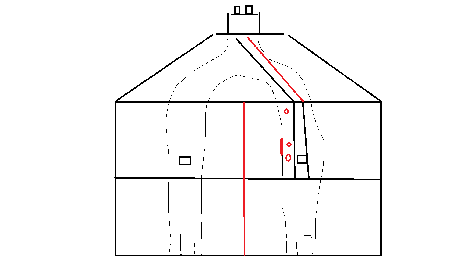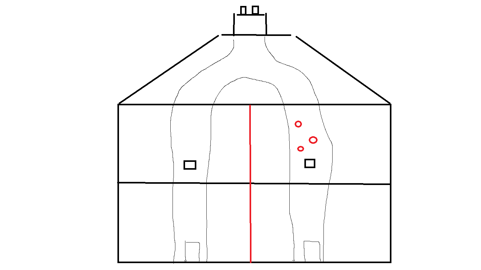I don't believe the chimney is lined, but ill double check. I'll go in the loft and have a look, i think the chimney splits in the loft to feed the front and the rear of the house, if my memory serves. I couldn't say if it was or wasn't cleaned as my son has only owned the house 8 months. Thanks all for comments. Ignore my crap design skills but this is the layout, vents in bedrooms, electric fires in lower rooms, damp shown by red circles, so just one room affected, ps this is the adjoin wall to the semi next door as well.