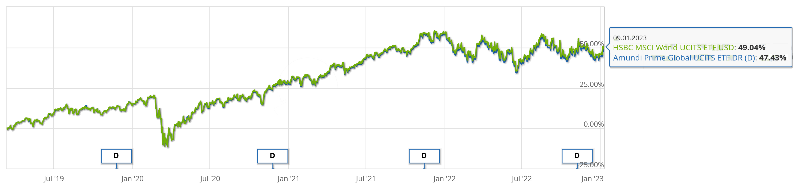 GBP after ongoing charges with dividends reinvested. You have to look closely. Amundi is in blue, hiding under the HSBC in green0 -